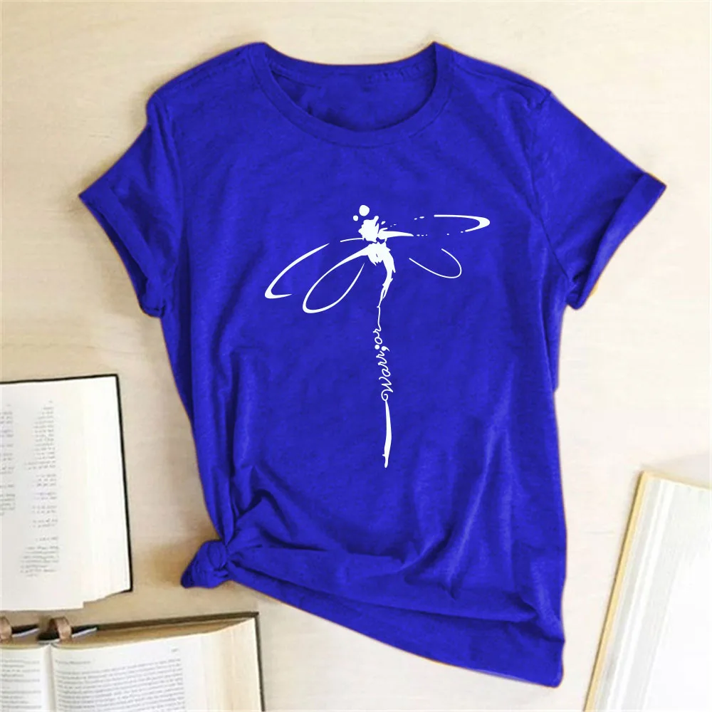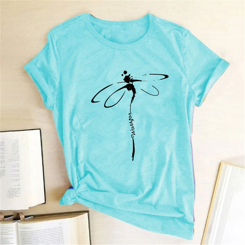Harajuku женская летняя футболка с принтом стрекозы, графические футболки с коротким рукавом, свободные топы для женщин, женская одежда размера плюс