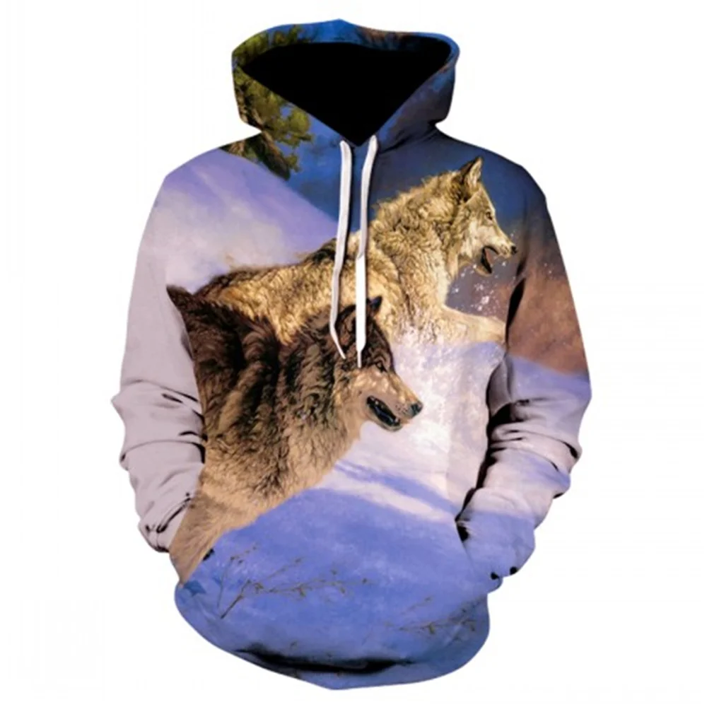 Модные мужские толстовки с капюшоном с 3D-принтом волка, мужскиежен...
