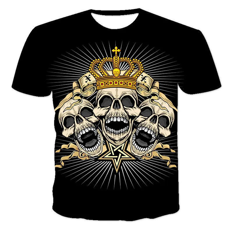 Футболка с 3D-принтом черепа для мужчин и женщин, Классическая универсальная индивидуализированная рубашка в стиле хип-хоп, с круглым вырезом и коротким рукавом, семейная одежда, 2021