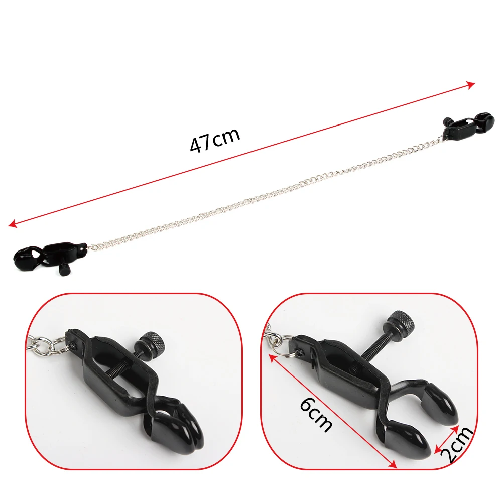 Материал: нержавеющая сталь Длина цепочки: около 34,5 см Вес нетто: 54 г Характеристики: SM, зажимы для сосков, ролевая играГарантия конфиденциальности: