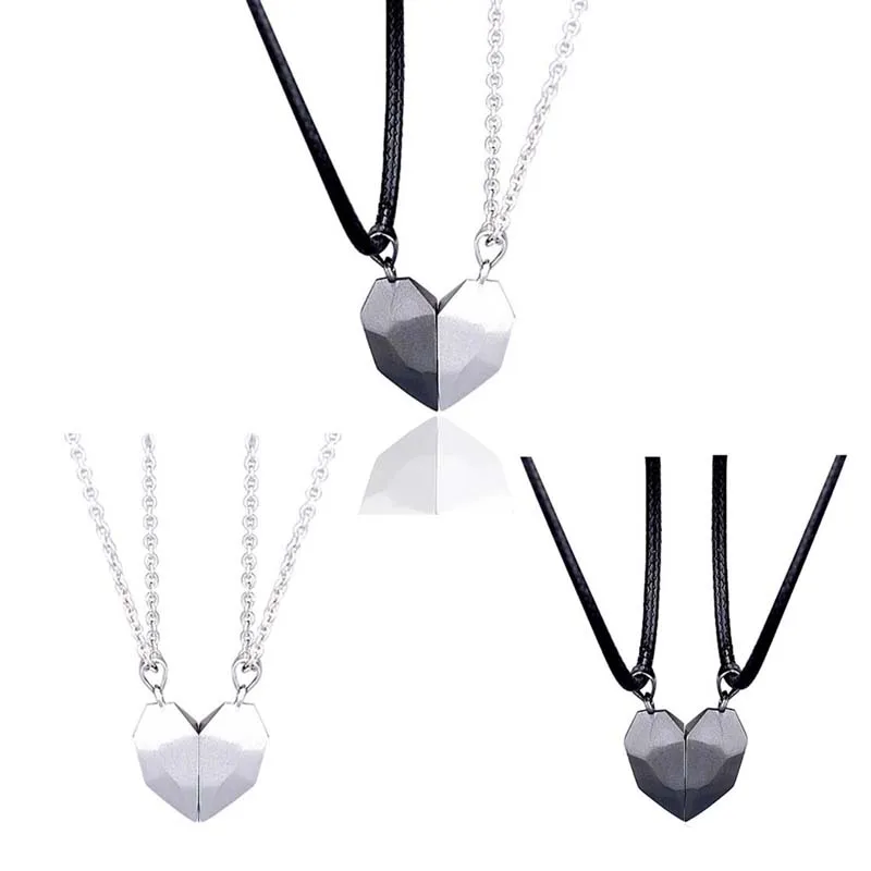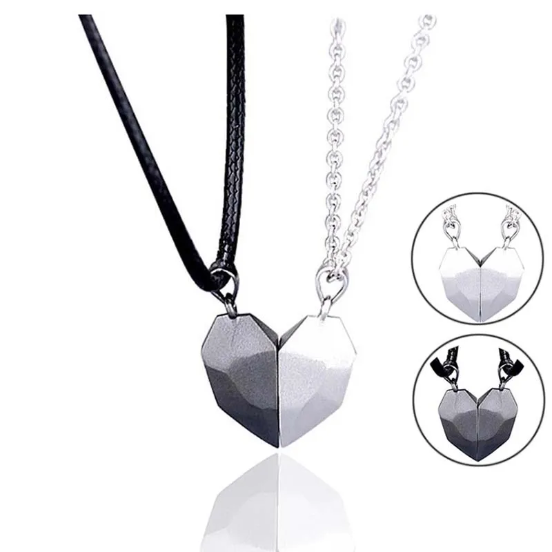 Подвеска в виде сердца для влюбленных, украшение для пар с гранями и сердцем, магнитное геометрическое ожерелье с подвеской, подарочное Ювелирное Украшение