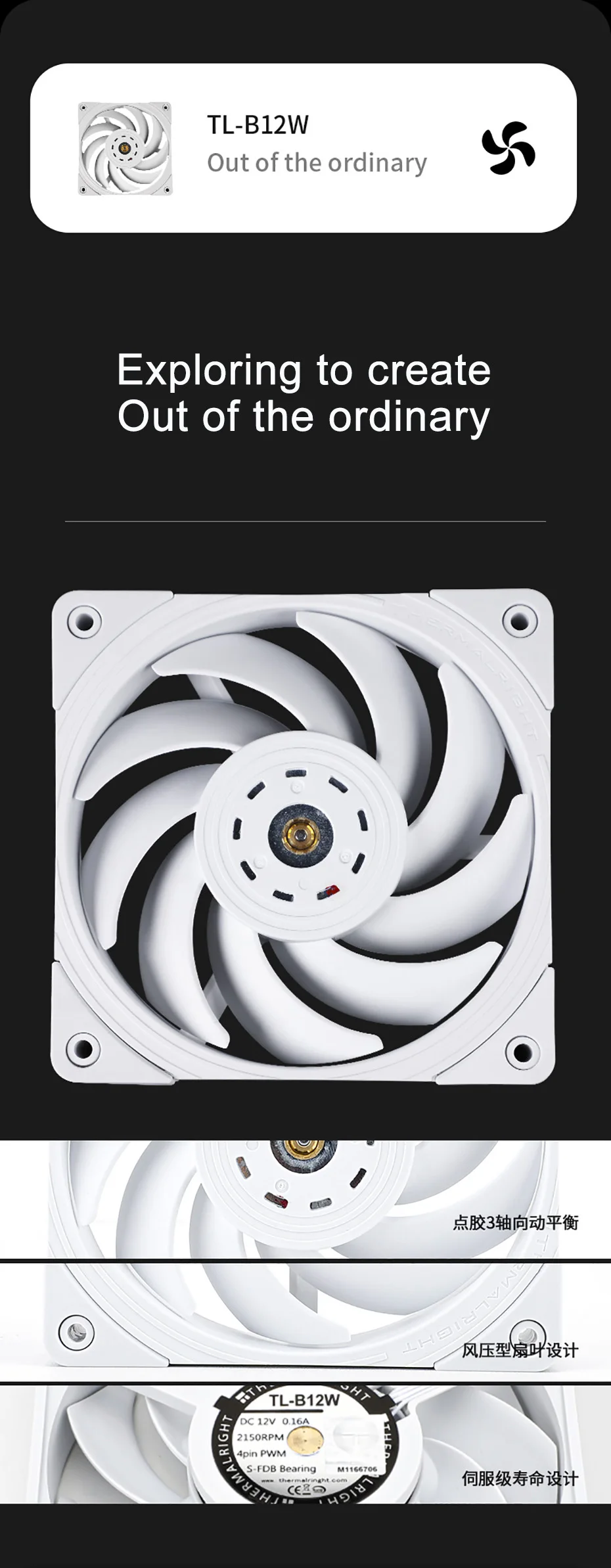 Thermalright TL-B12W Белый Черный 4PIN ШИМ 120 мм чехол для компьютера Вентилятор охлаждения PBT вентилятор давления ветра тихий вентилятор охлаждения для ПК