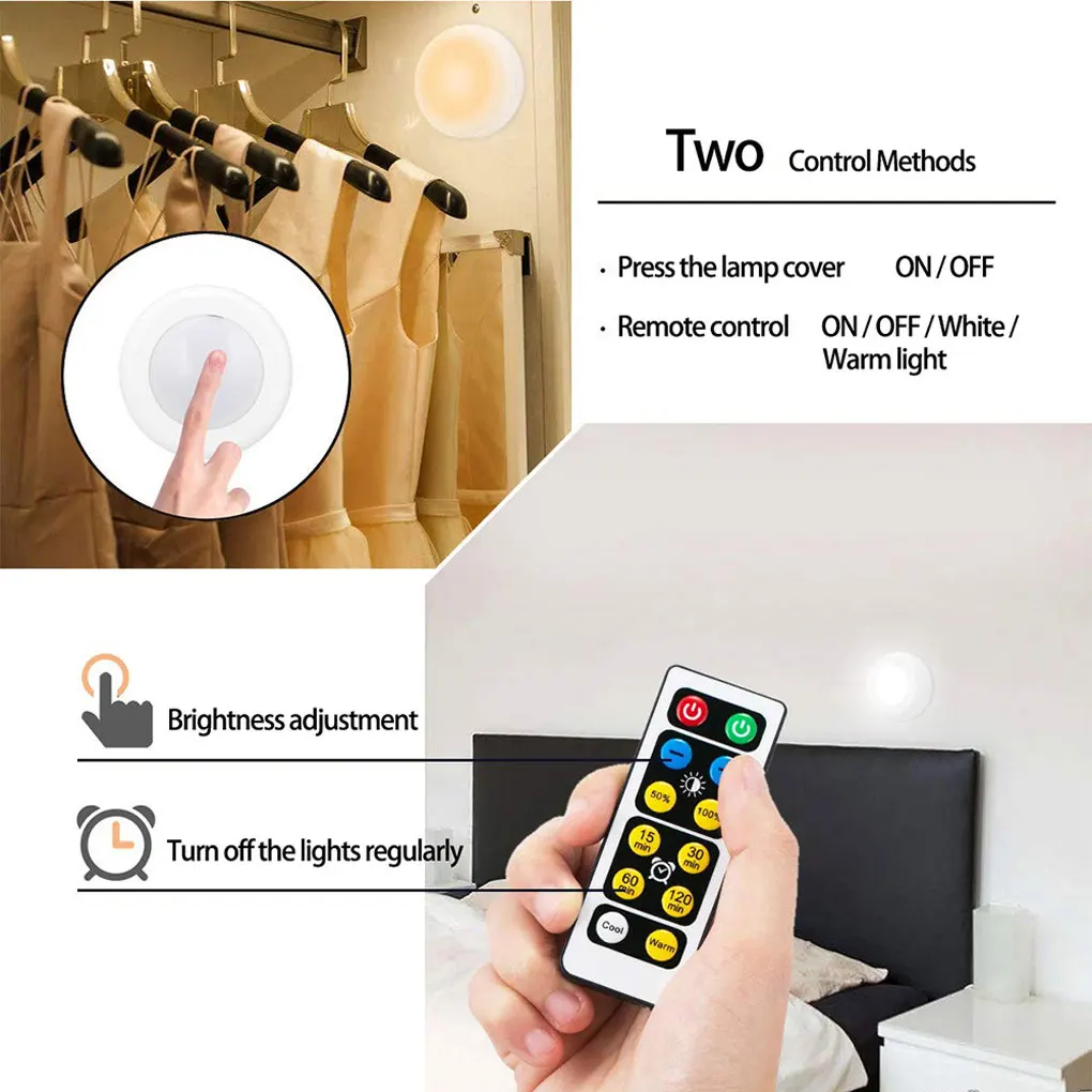 Светильник для шкафа с беспроводным сенсорным датчиком с регулируемой яркостью светодиодный ночник на батарейках пульт дистанционного управления подходит для кухонной лестницы