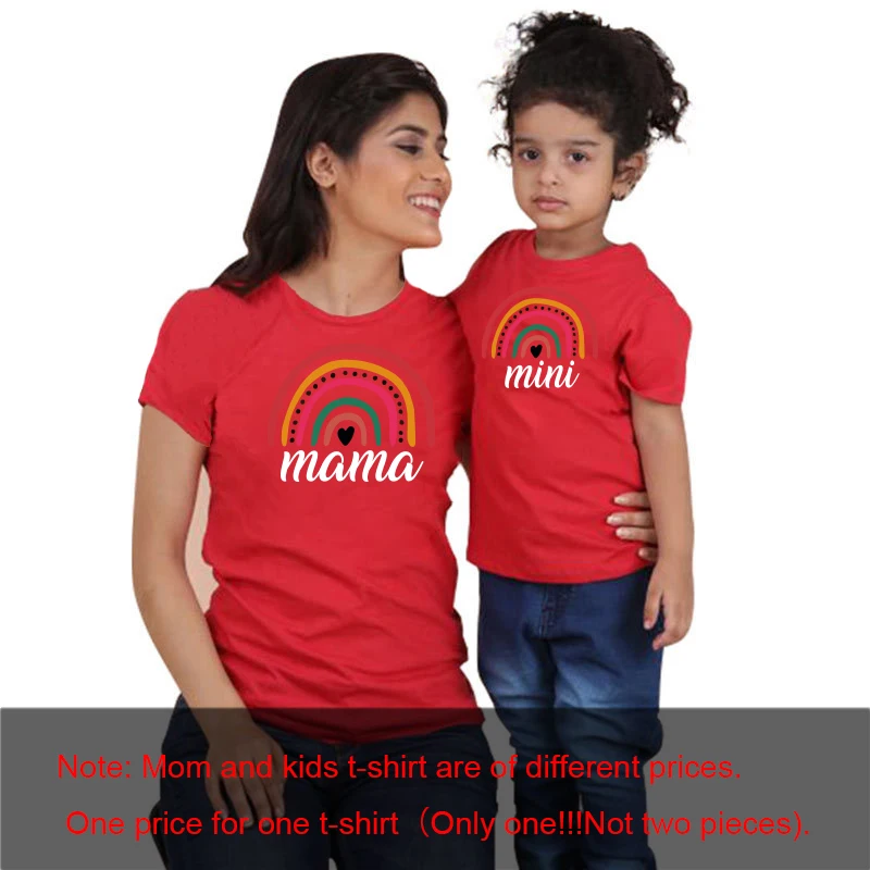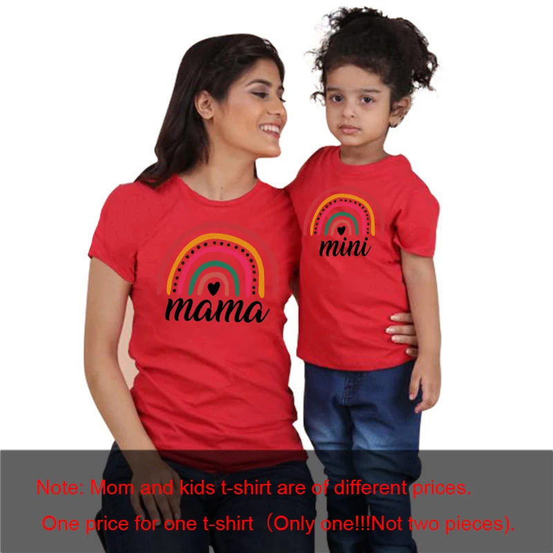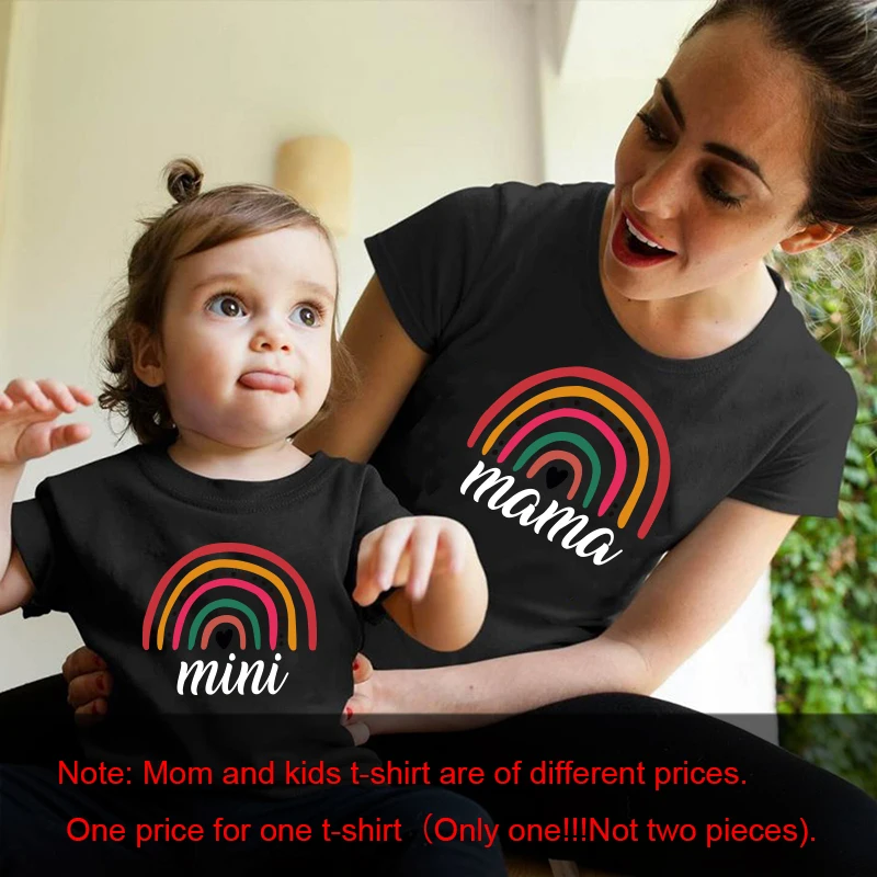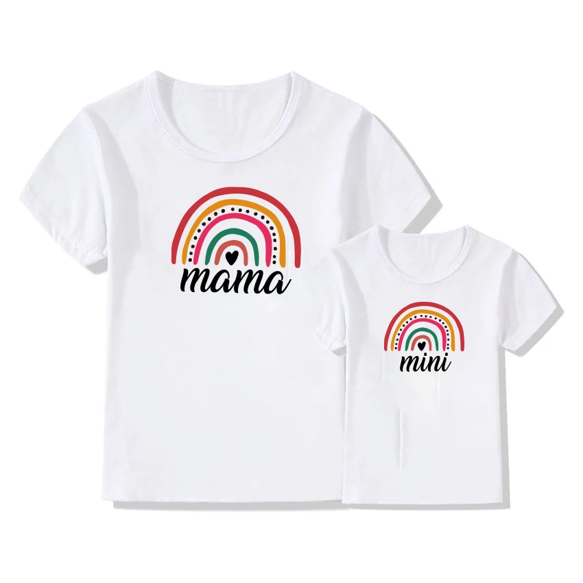 Футболка с коротким рукавом и радужным принтом, для мамы и дочки, 1...