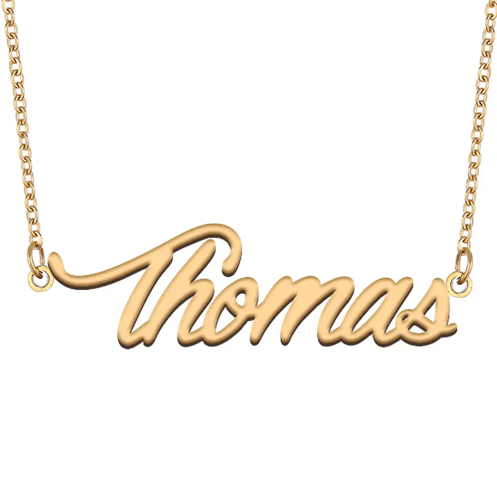 Ожерелье с именем Thomas для женщин, ювелирные изделия из нержавеющей стали с покрытием из 18-каратного золота, кулон-табличка с именем Femme, подарок для матери, девушки