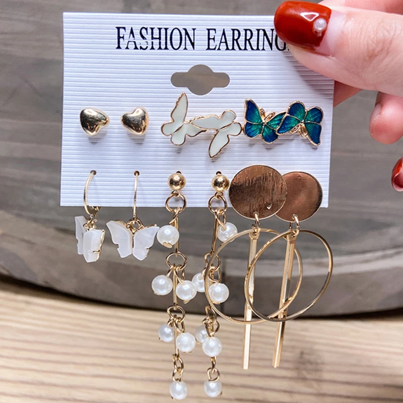 Набор винтажных серег с жемчугом, бабочкой, леопардовым принтом, дл...