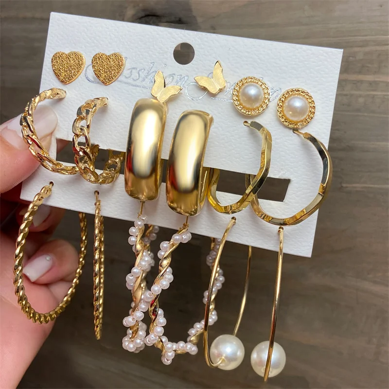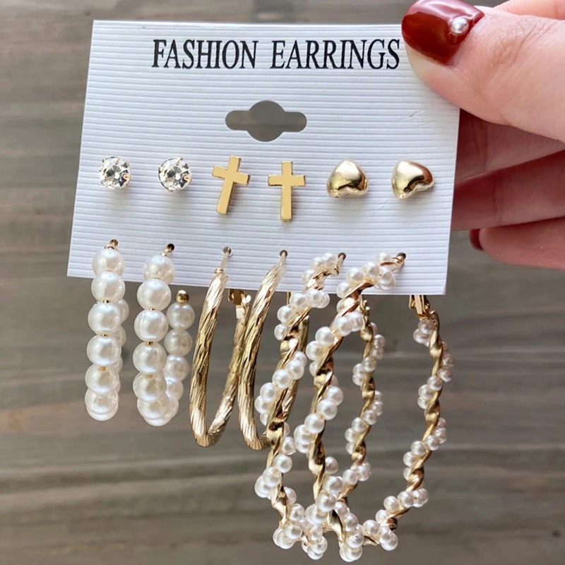 Модные жемчужные серьги-кольца Комплект сережек для женщин Geometir...