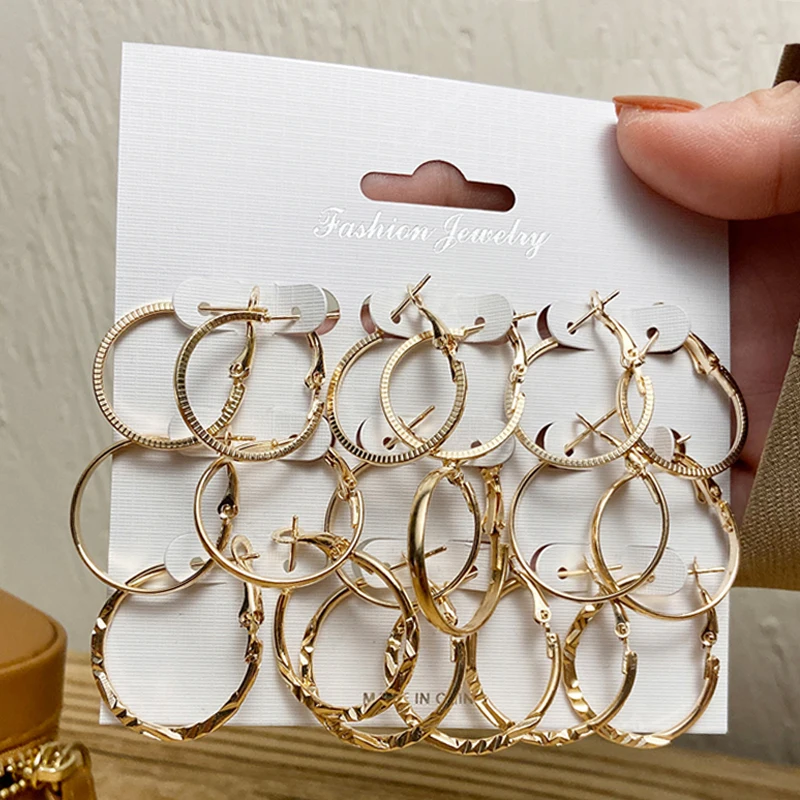 Серьги-кольца в стиле бохо золотого цвета, набор для женщин, геомет...