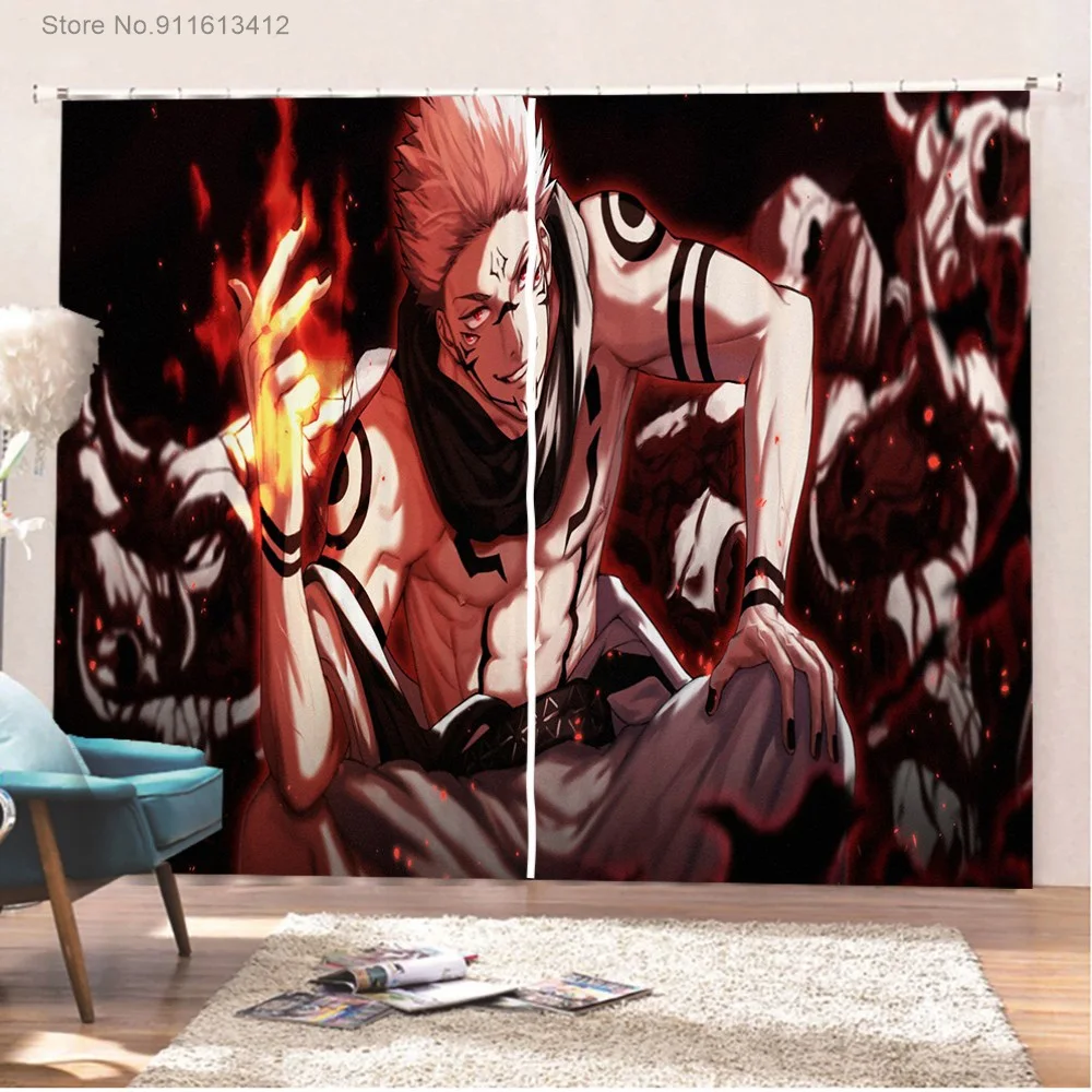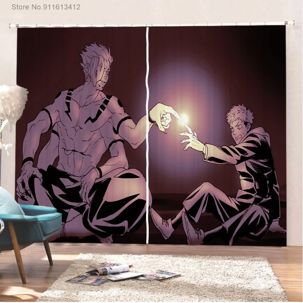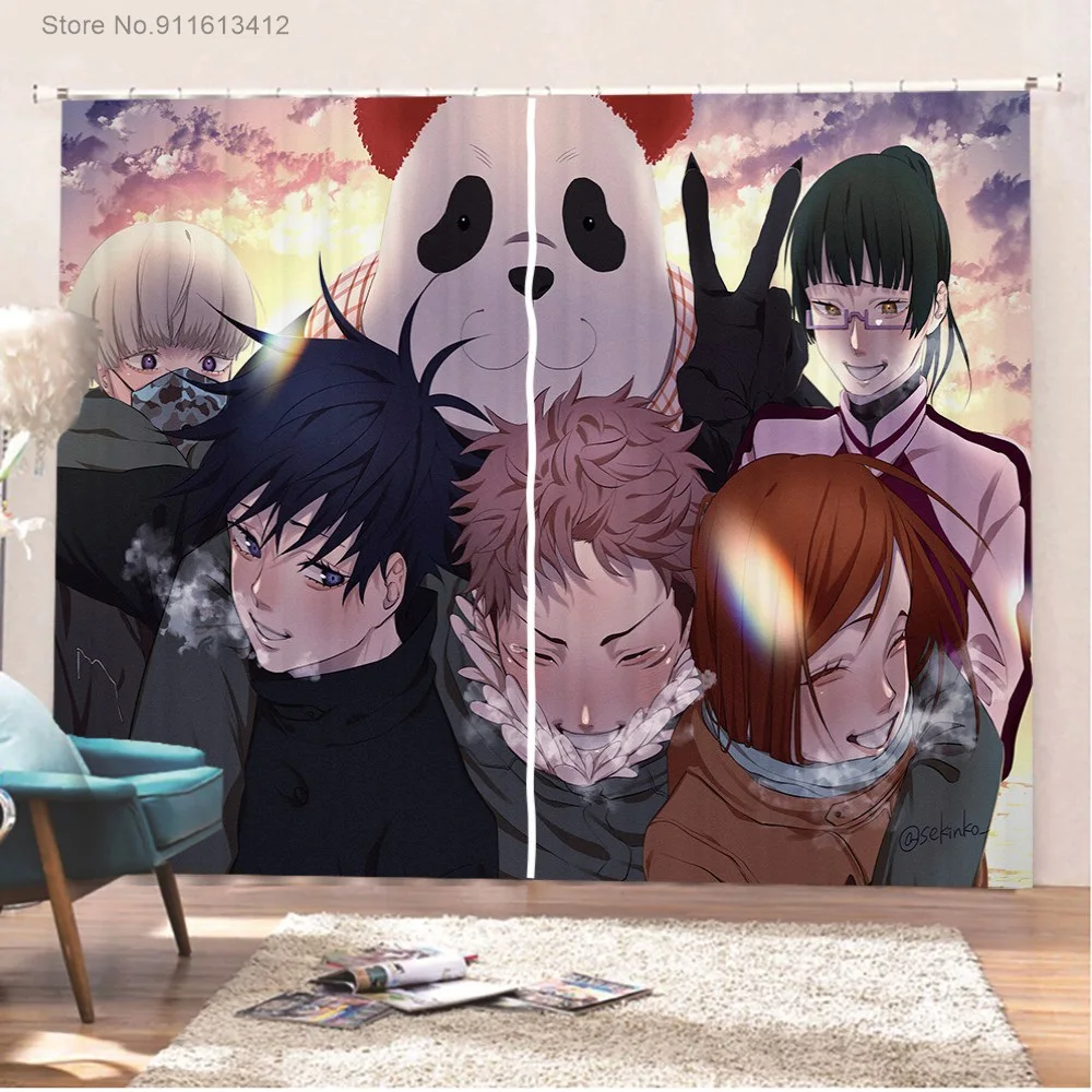 Светонепроницаемые шторы juютсу Kaisen, занавески для окон гостиной с 3D принтом, 2 панели, Мультяшные Японские Аниме украшения для окон
