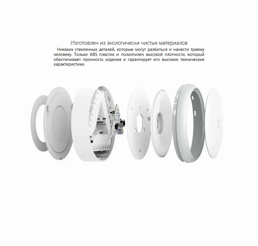 Никаких стеклянных деталей, которые могут разбиться и нанести травму человеку. Только ABS пластик и полиэтилен высокой плотности, который обеспечивает прочность изделия и гарантирует его высокие технические характеристики.