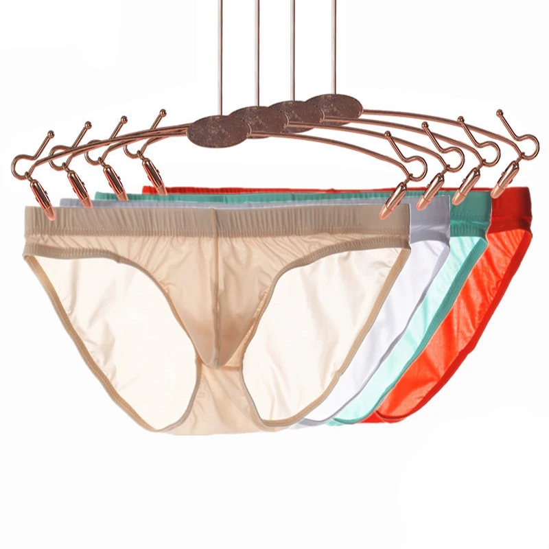 Пикантное Летнее шелковое мужское прозрачное однотонное нижнее белье с низкой талией, бесшовное дышащее мягкое облегающее тонкое Мужское нижнее белье с U-образной выпуклостью