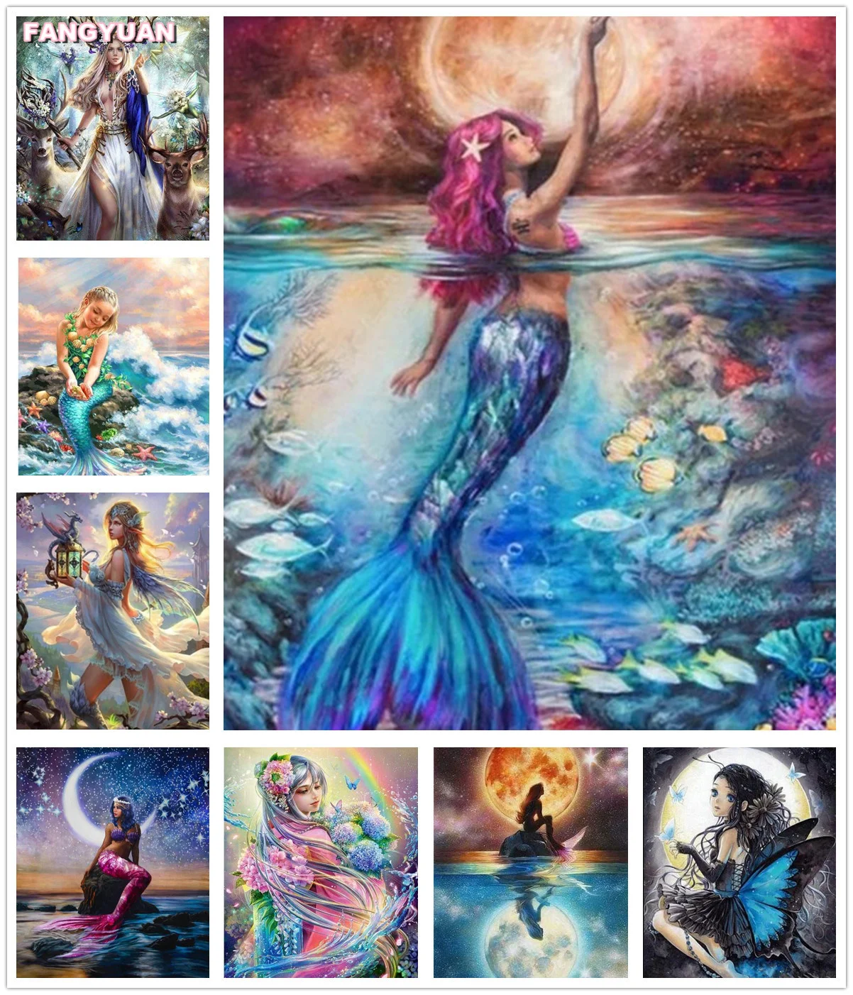 Алмазная 5D живопись сделай сам, наборы для вышивки крестиком русалка, рукоделие Луна, Алмазная мозаика, украшение для дома
