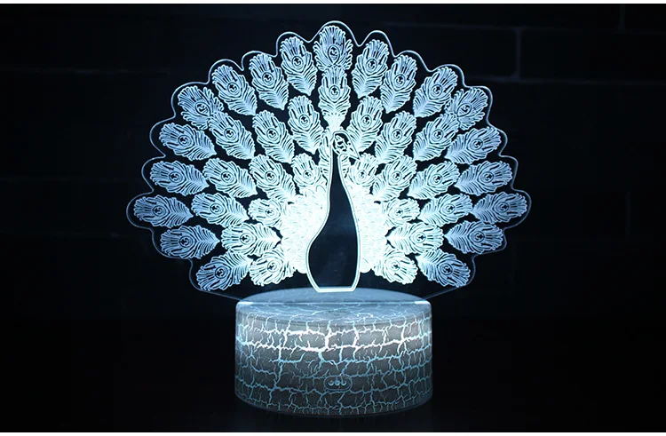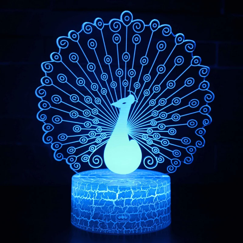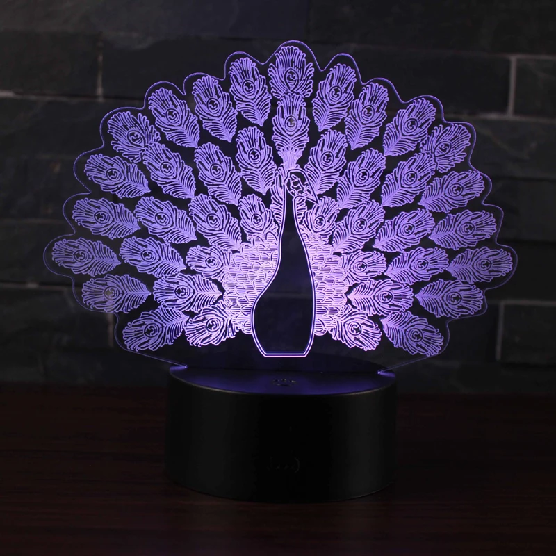 Маленькие ночники, 3D Павлин, 7 цветов, светодиодный подарок, акриловая настольная лампа, сенсорный пульт дистанционного управления, украшение для дома и комнаты, настольная лампа