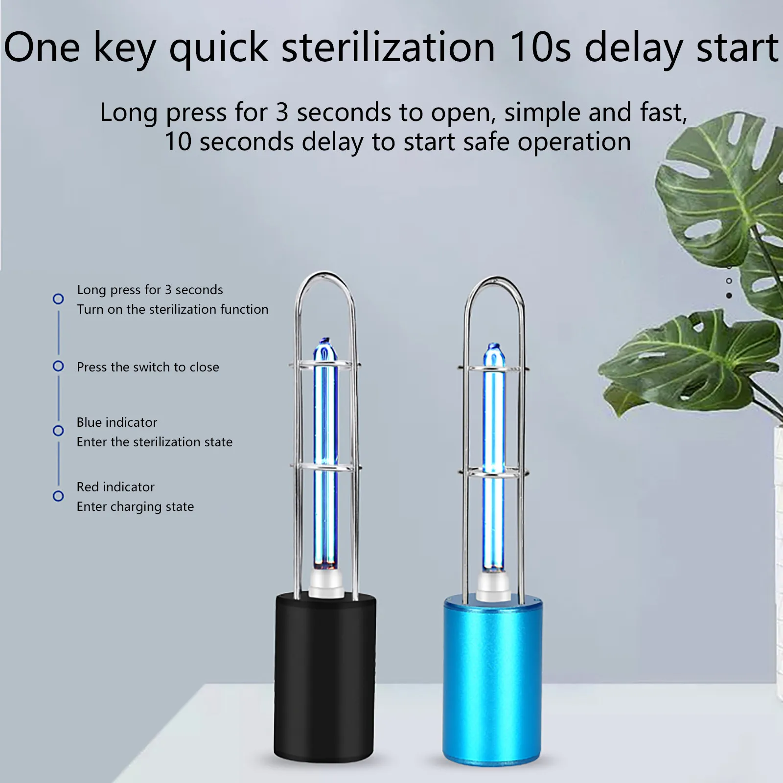 4. Наша портативная лампа имеет функцию длительного нажатия переключателя 3S и задержки запуска 10S, чтобы люди могли уйти раньше, чем лампа сработает, чтобы избежать вреда ультрафиолетовых лучей. Другие лампы горят вручную или удаленно.