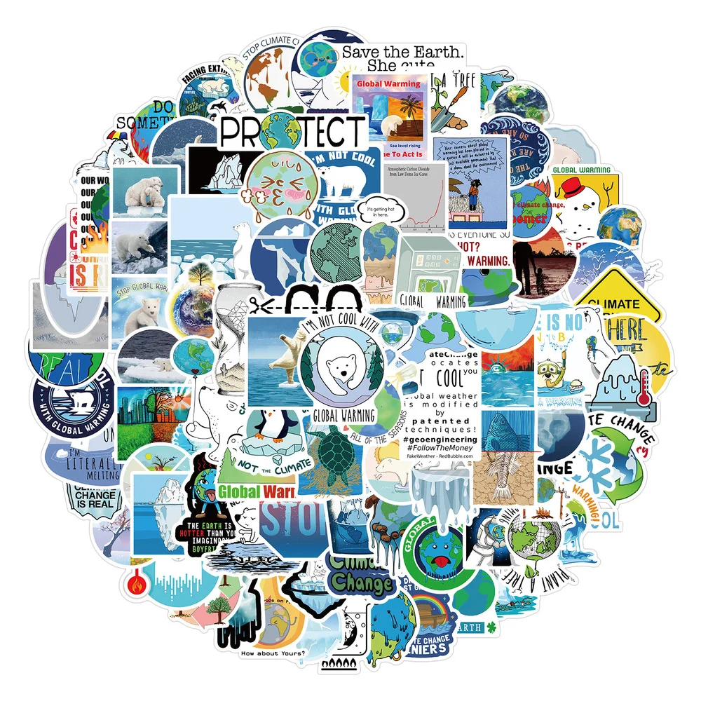 100 шт. Мультяшные наклейки с глобальным подогревом и климатической сменой для самостоятельного изготовления компьютера чемодана скрапбукинга ноутбука мотоцикла скейтборда