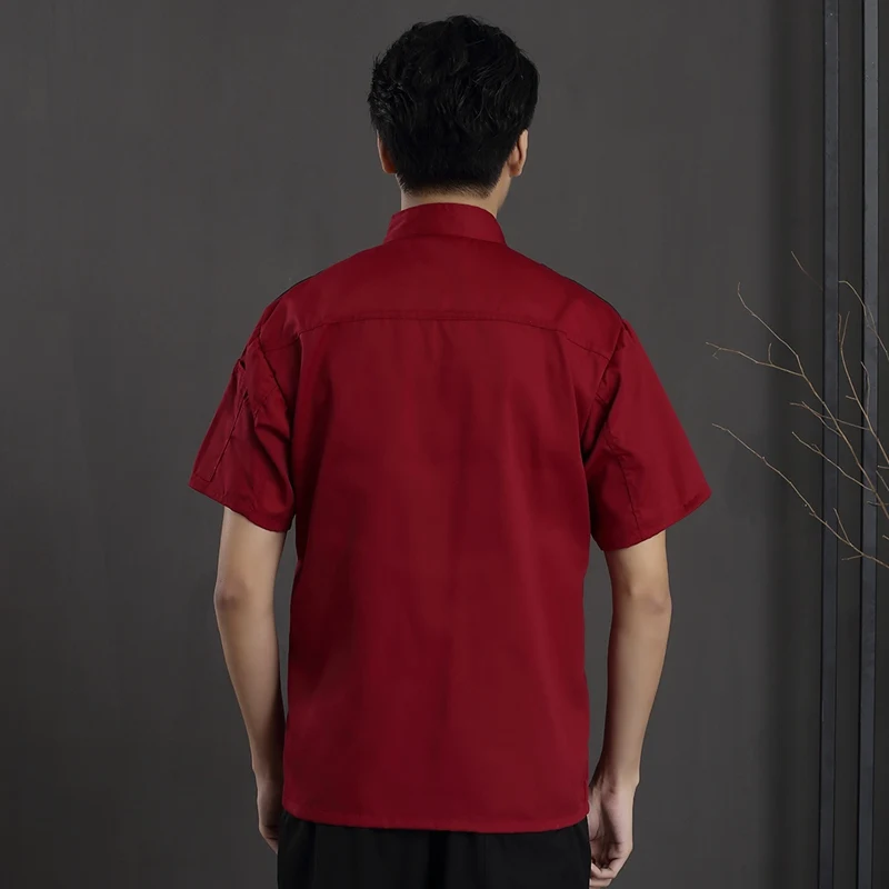 Унисекс куртки для готовки шеф-повара рубашка шеф-повара с короткими рукавами с косым воротником двубортная рубашка костюм Одежда для обслуживания еды