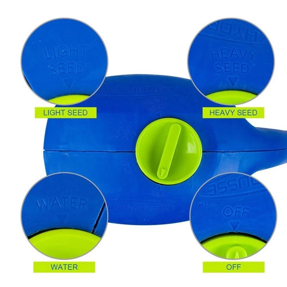 Шаг 4: время посадки Налейте весь пакет семян травы и муссовой добавки в канистра. С циферблатом в выключенном положении Подключите шланг и включите воду. Поверните Циферблат на светильник и Заполните Емкость на 3 четверти полной воды, затем выключите воду в течение не менее 30 секунд, чтобы обеспечить правильное покрытие семян. Когда вы будете готовы, включите воду и начните сеять область, которую вы хотите обработать. Включите/Выключите устройство при перемещении по лужайке.
