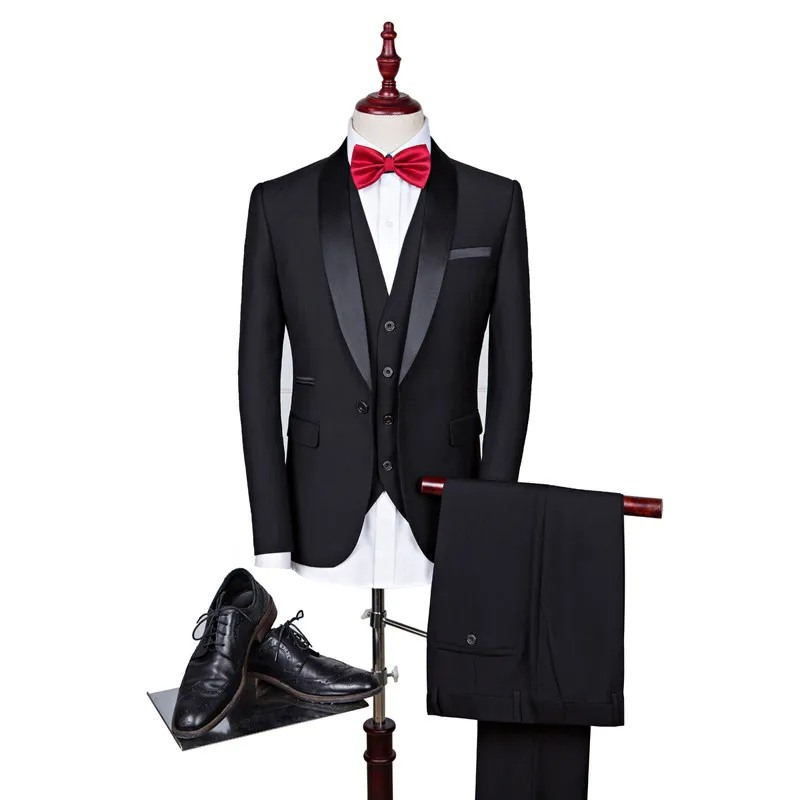 Мужской костюм, Свадебный костюм из 3 предметов с воротником-шалью,...