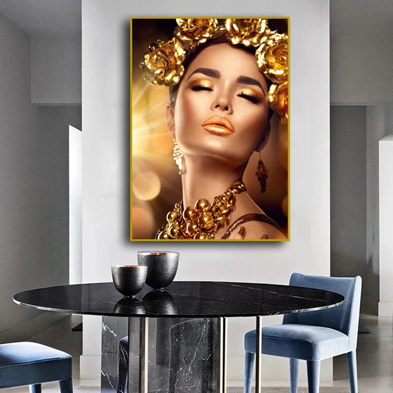 100x140 см золотой макияж женские холщовые картины постеры и печать...