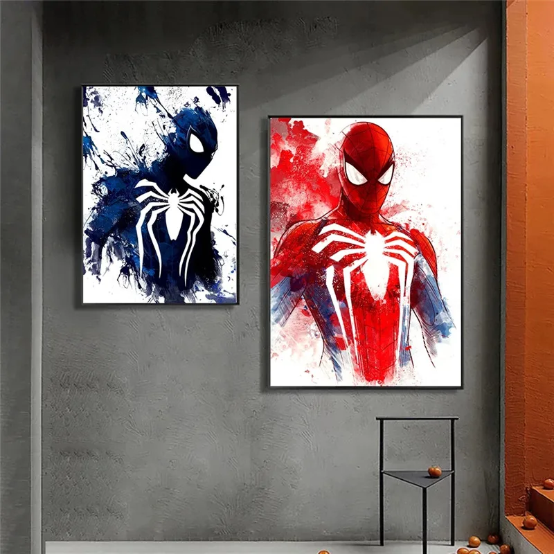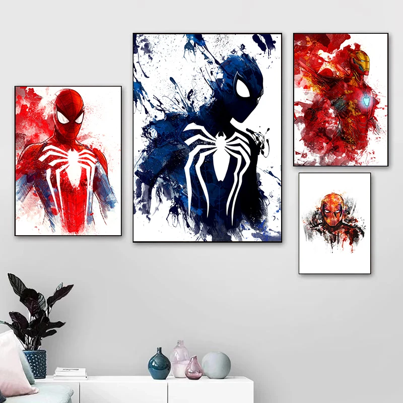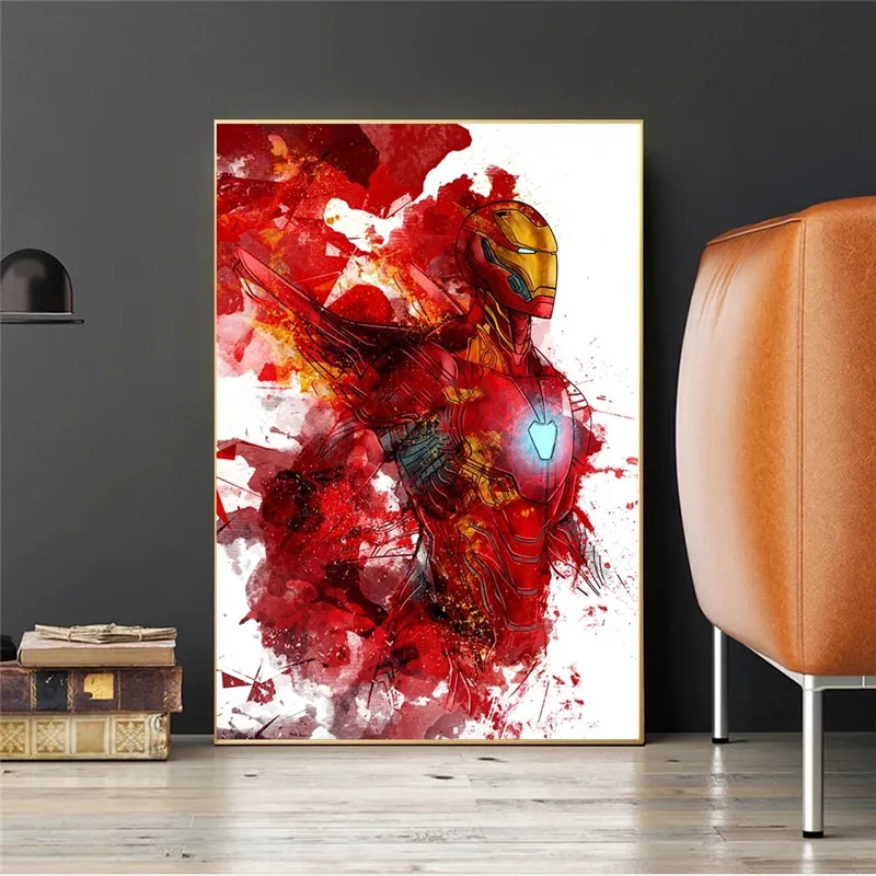 Супергероев Marvel Человек-паук, Железный человек аниме плакат Абстрактная живопись акварельная картина на холсте для детей, подарок на день рождения, Спальня украшения