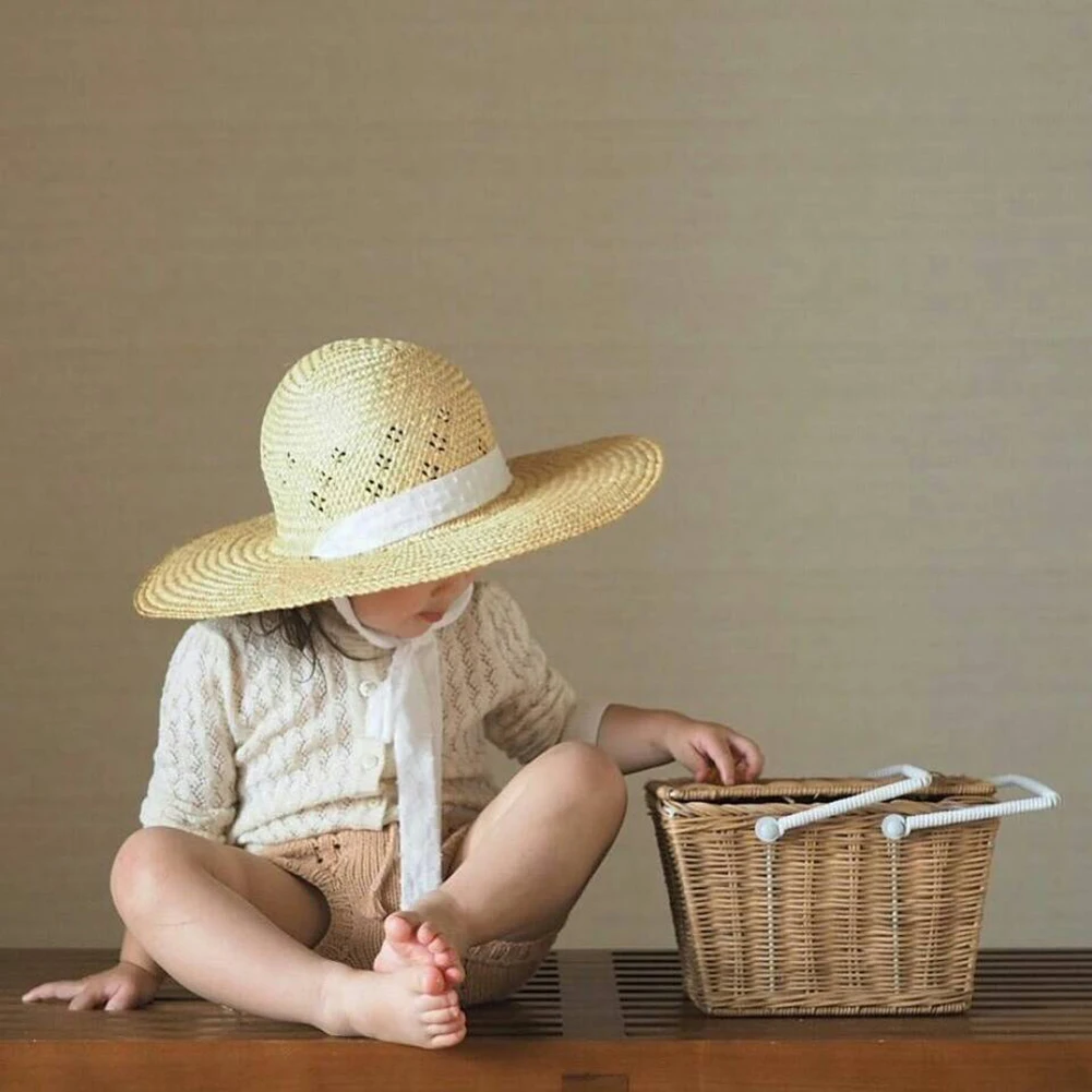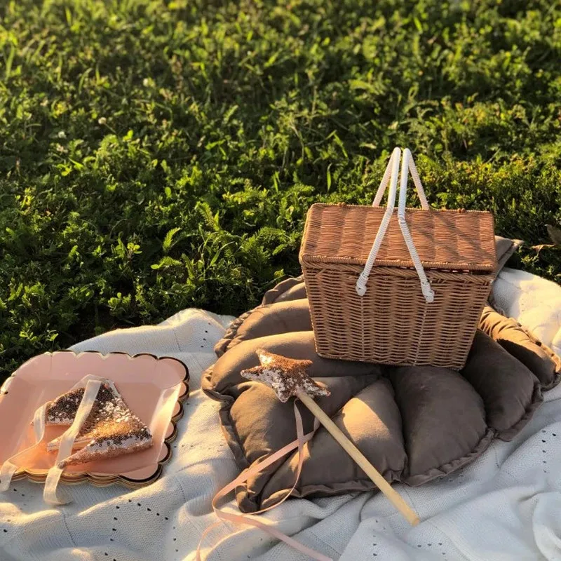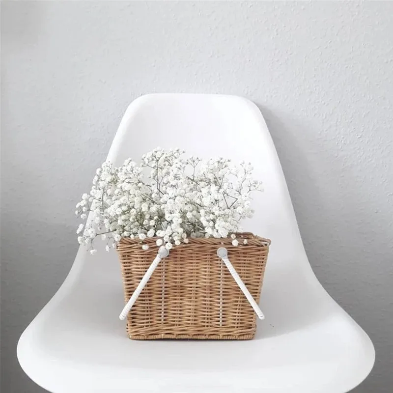 Милая летняя корзина для колокольчиков, натуральная винтажная плетеная переносная Корзина для пикника из ротанга, многофункциональная коробка для хранения