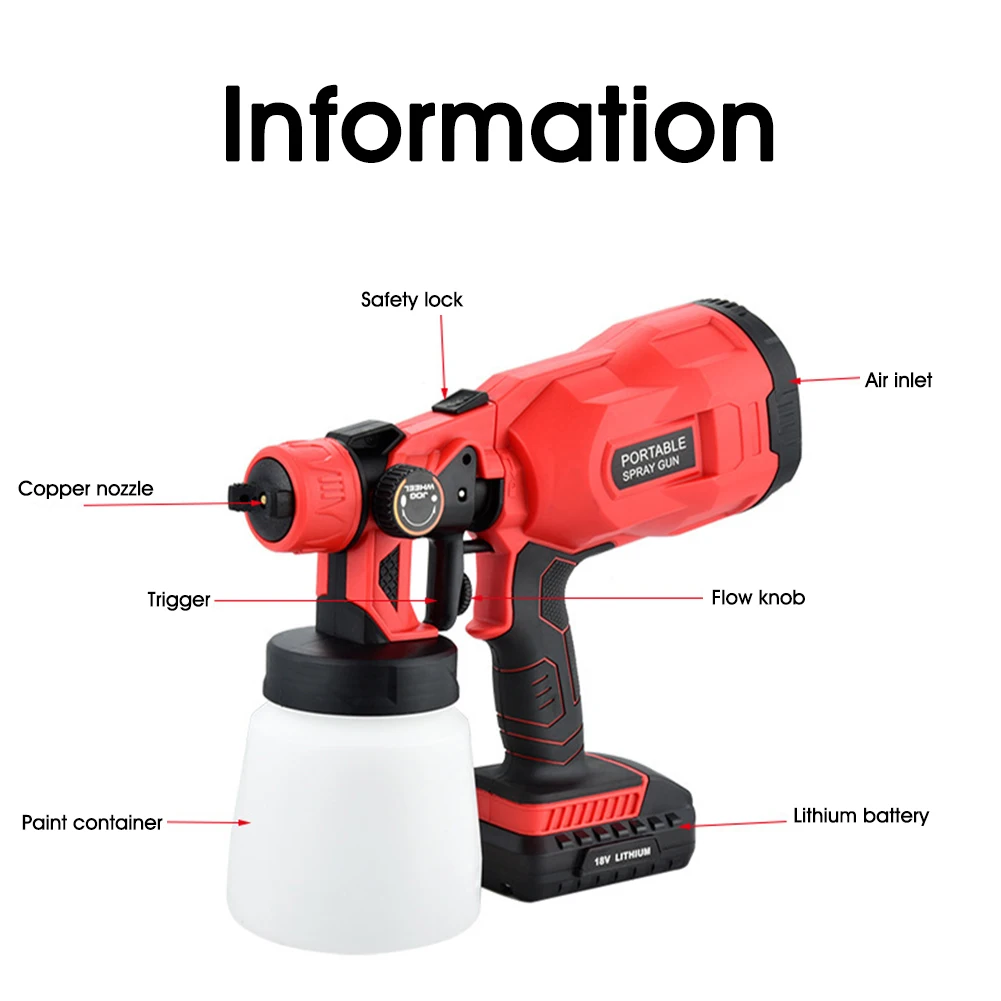 Беспроводной Краскораспылитель HVLP, перезаряжаемый домашний пистолет-распылитель высокой мощности 550 Вт, контейнер 800 мл, регулируемый поток с 3 режимами