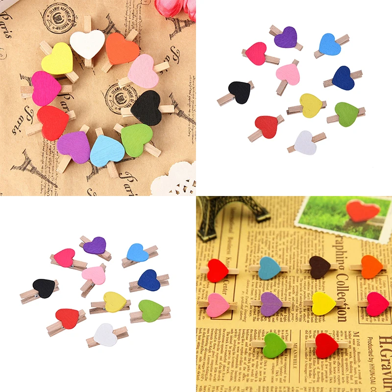 20 шт милые каваи любовь сердца деревянные зажимы одежда фото бумаг...
