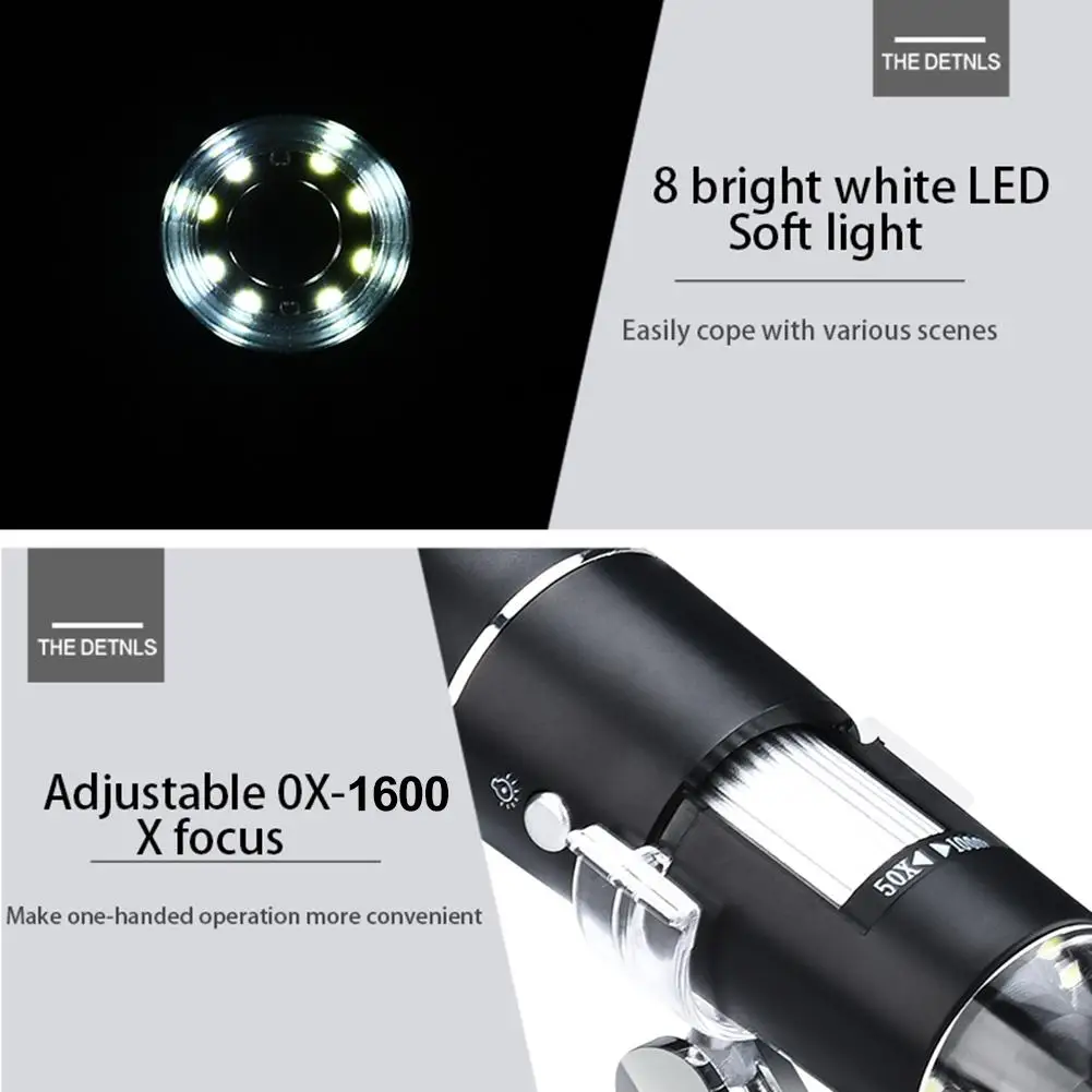 1600X HD электронный цифровой микроскоп, 8 белых светодиодных ламп,...