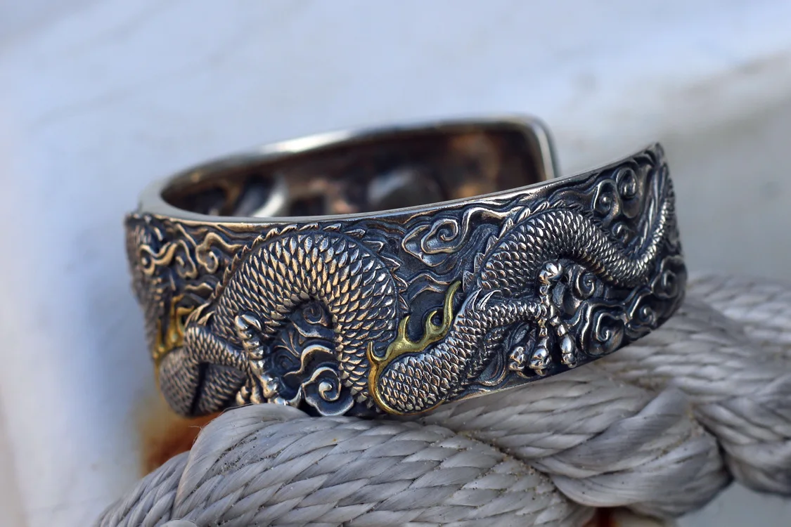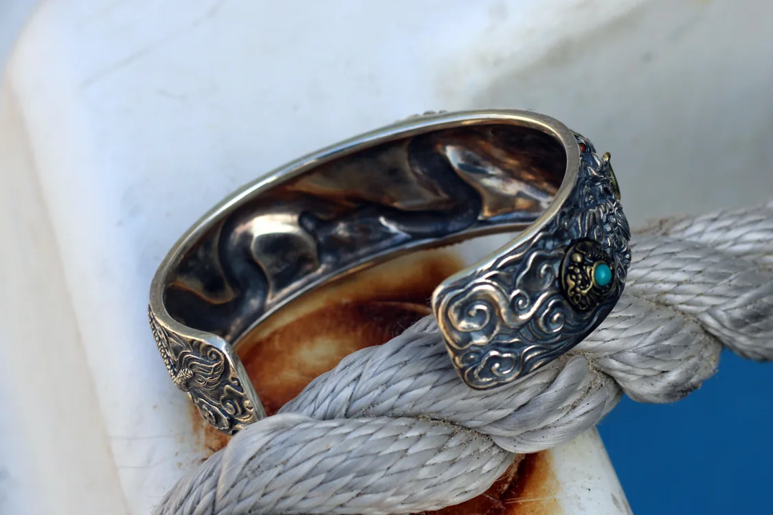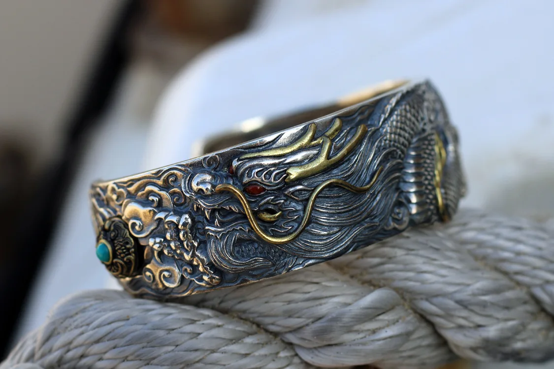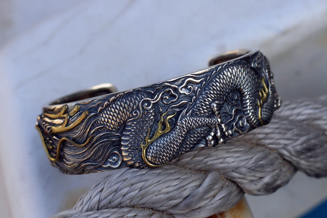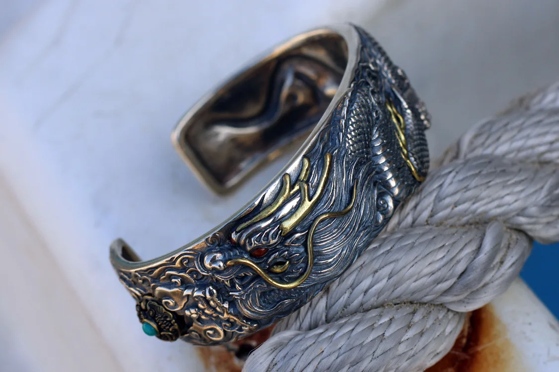 Мужской классический браслет с изображением Властного дракона, широкий браслет в этническом ретро стиле, подарок