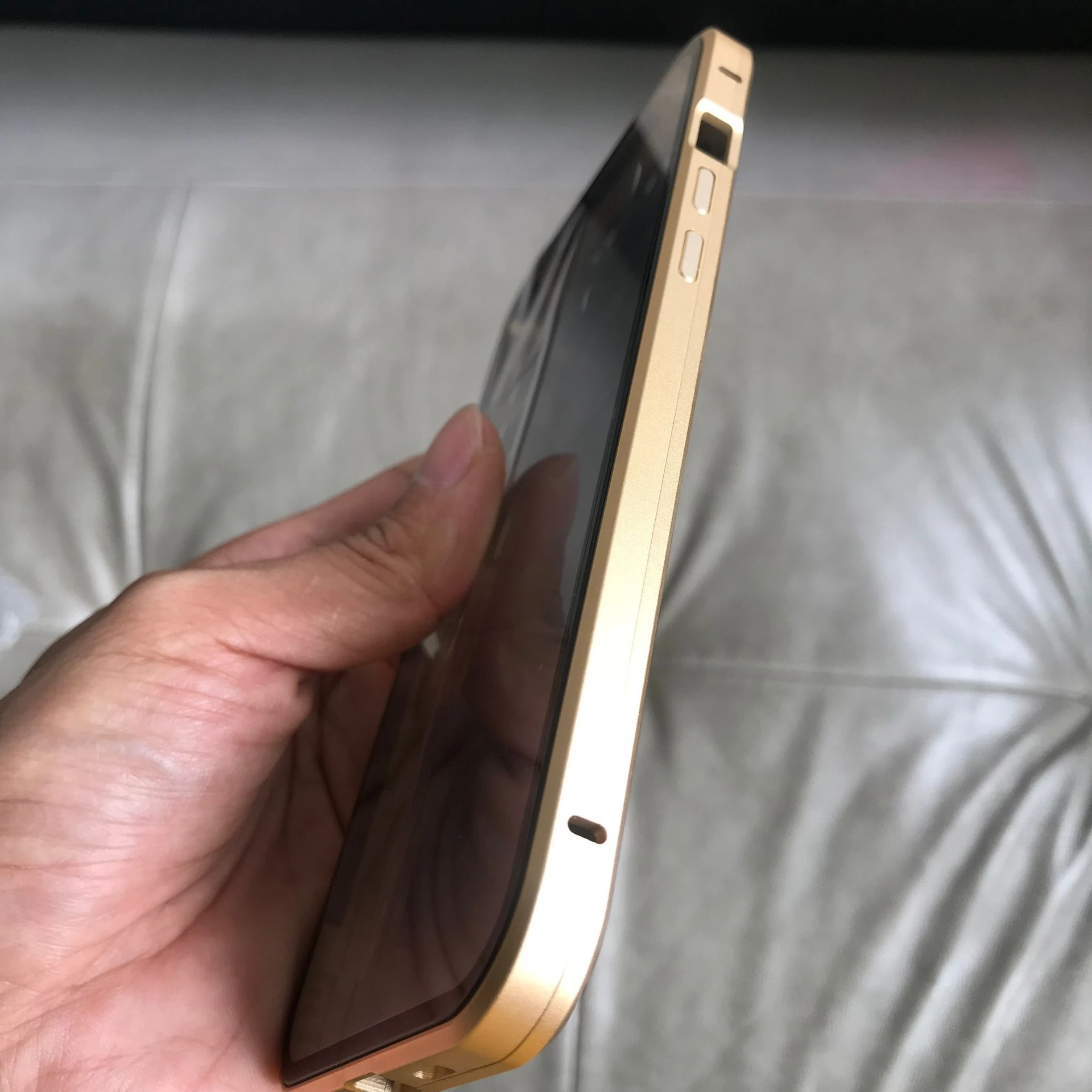 Защитный чехол с ощущением безопасности в моей руке. Отверстия точные. Мне нравится Двусторонняя защита. Чехол идеально подходит к телефону, он очень сильно отсасывает, нет зазоров, а рамка имеет сильную магнитную силу. Нет влияния на сигнал. Выглядит очень хорошо, когда держится в руке. Он действительно выглядит как голый металл.