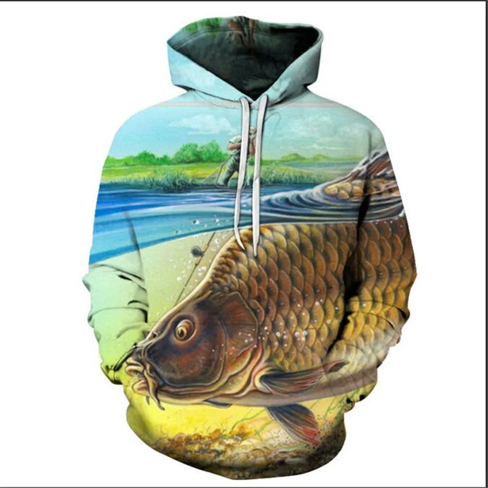 Забавная толстовка с капюшоном для мужчин и женщин, толстовка с длинным рукавом и 3D-принтом тропической рыбы в рыбацком стиле, уличная одежда, 2021