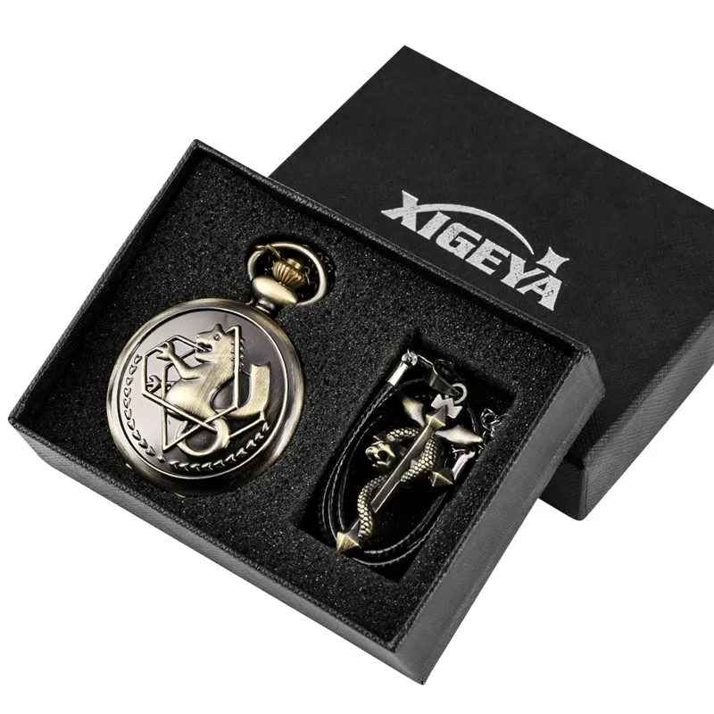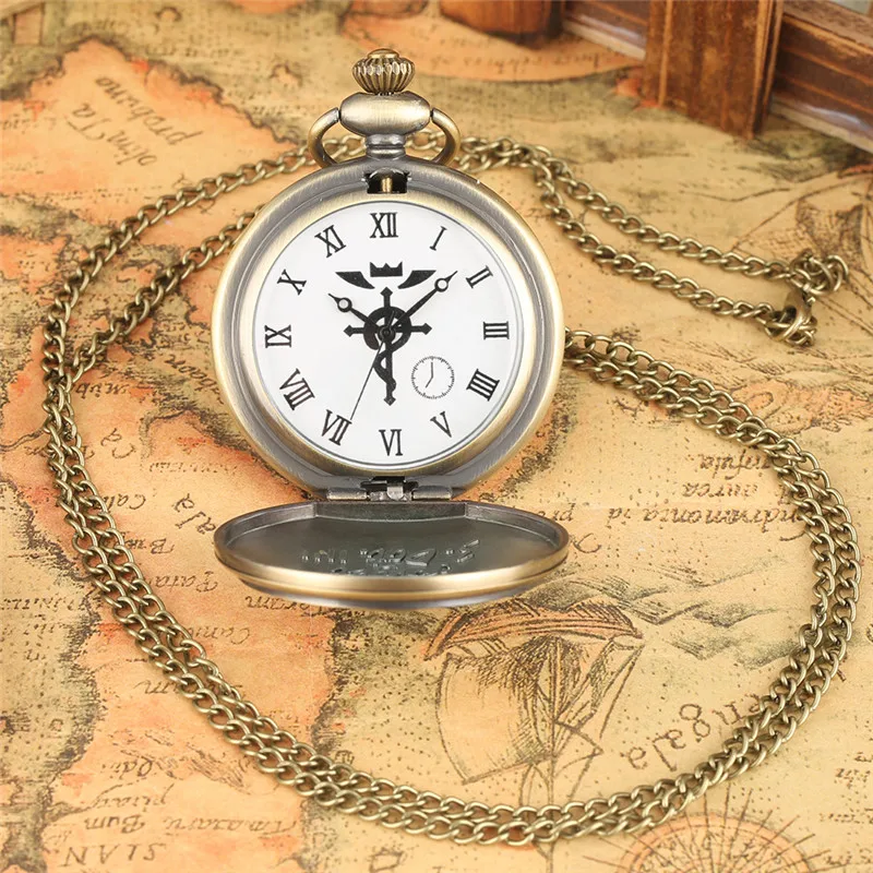 Бронзовые алхимичные часы, антикварные кварцевые карманные часы, подвеска на цепочке, японское аниме, отображение римских цифр, подарочный набор