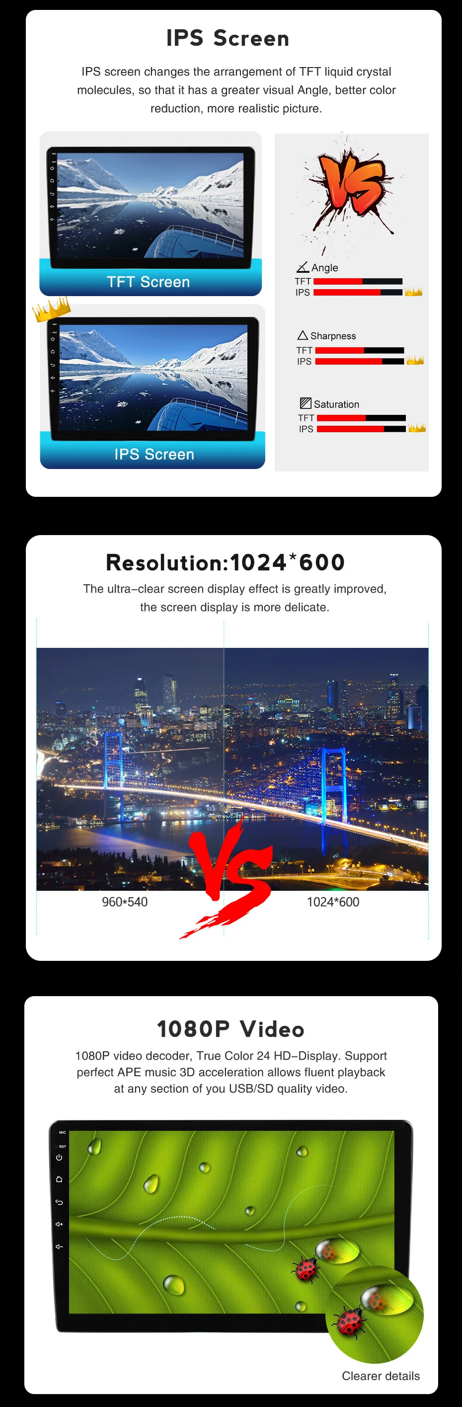 IPS экран 1024x600 + 1080P видео