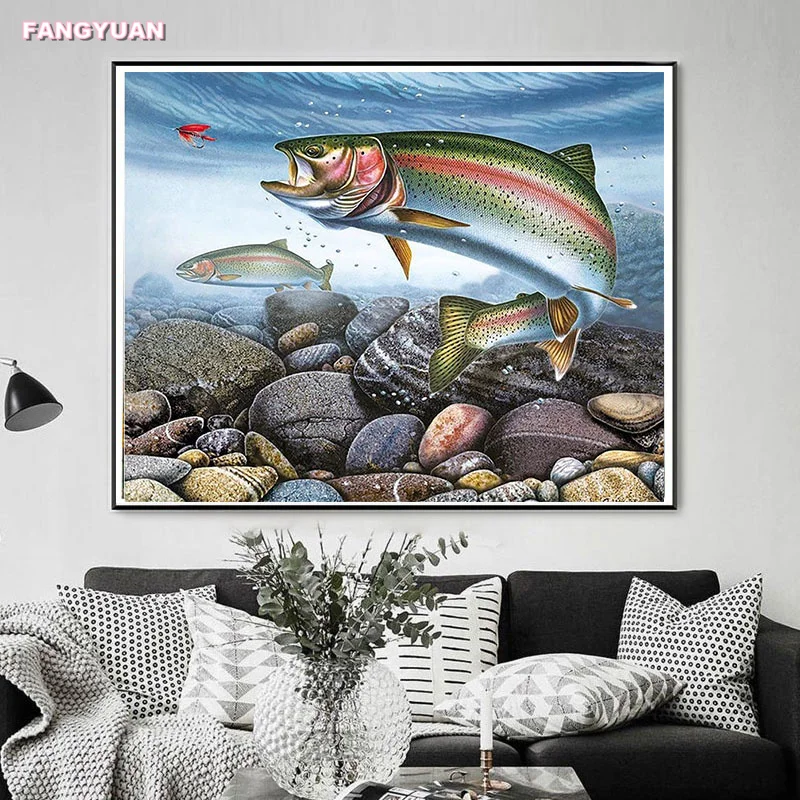 Алмазная 5D Вышивка сделай сам, мозаика, наборы для вышивки крестиком, алмазная живопись с подводной лодкой, пейзаж, рыба, человек, море, аксессуары для украшения дома