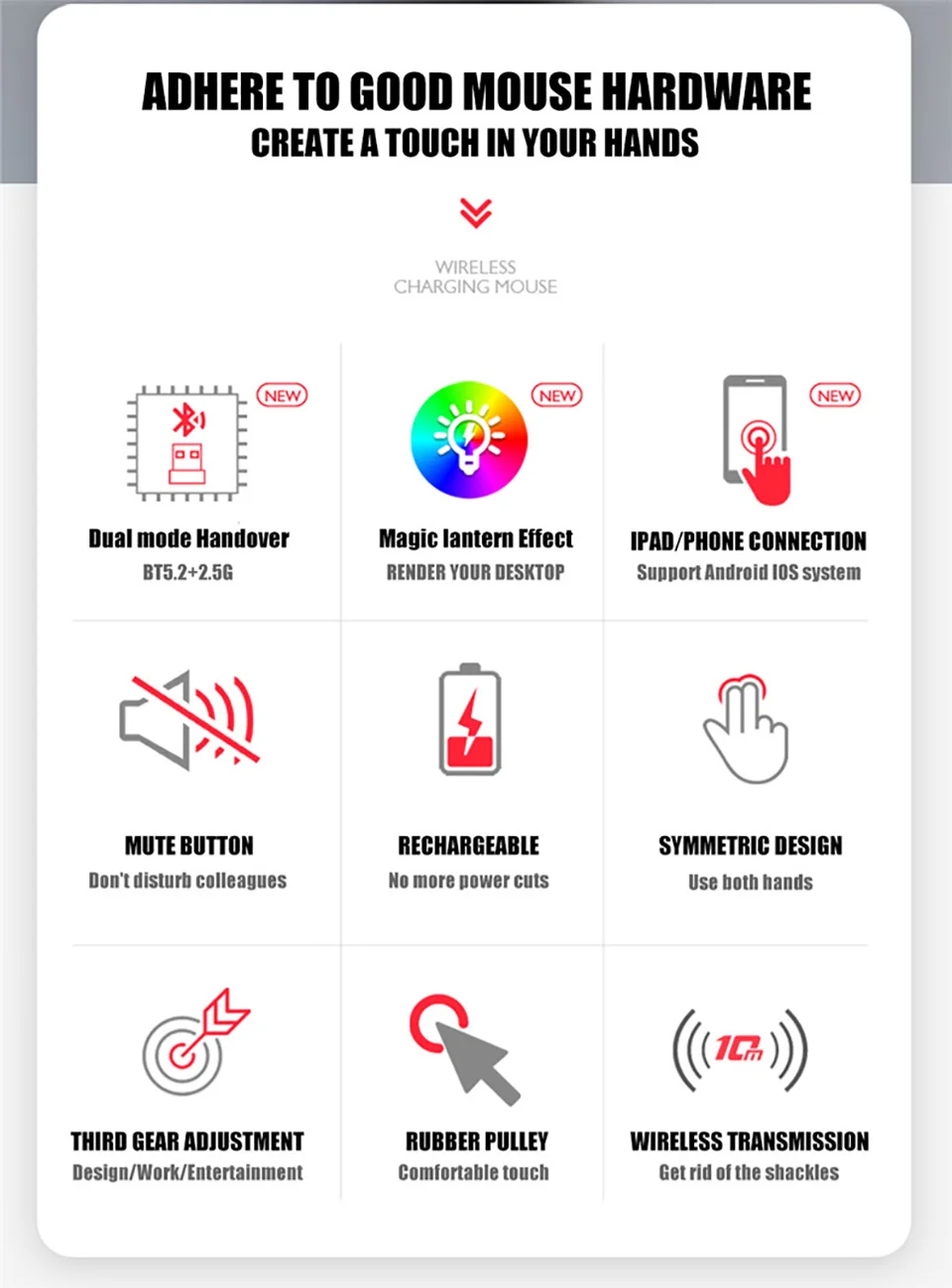 Номер моделиWireless Bluetooth Dual-mode Chargeable Mouse