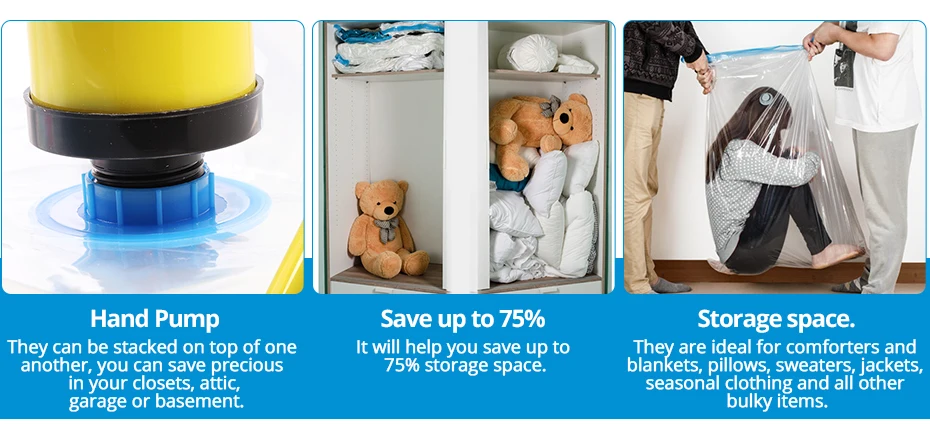 3. Подходит для любого пылесоса, ручной насос для свободного путешествия ---- Вакуумный Герметичный пакет подходит для любого пылесоса со шлангом. Отлично подходит для путешествий и использования без пылесоса дома