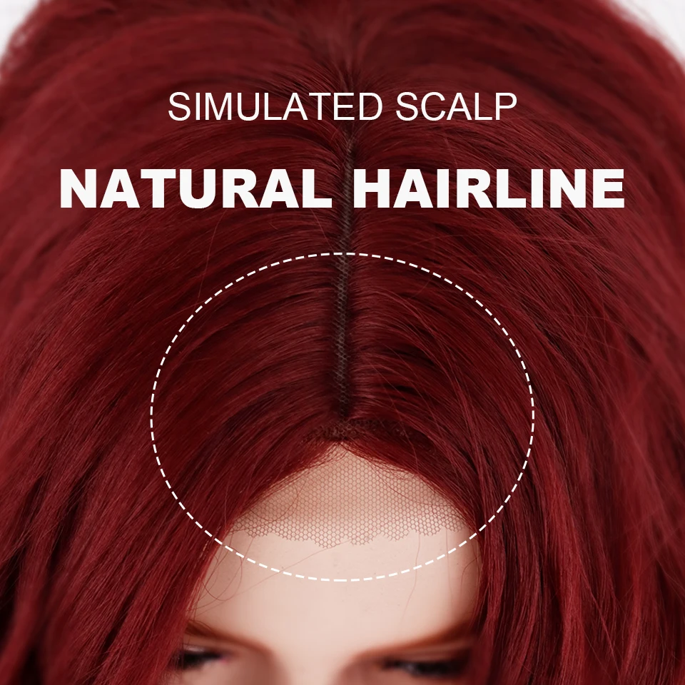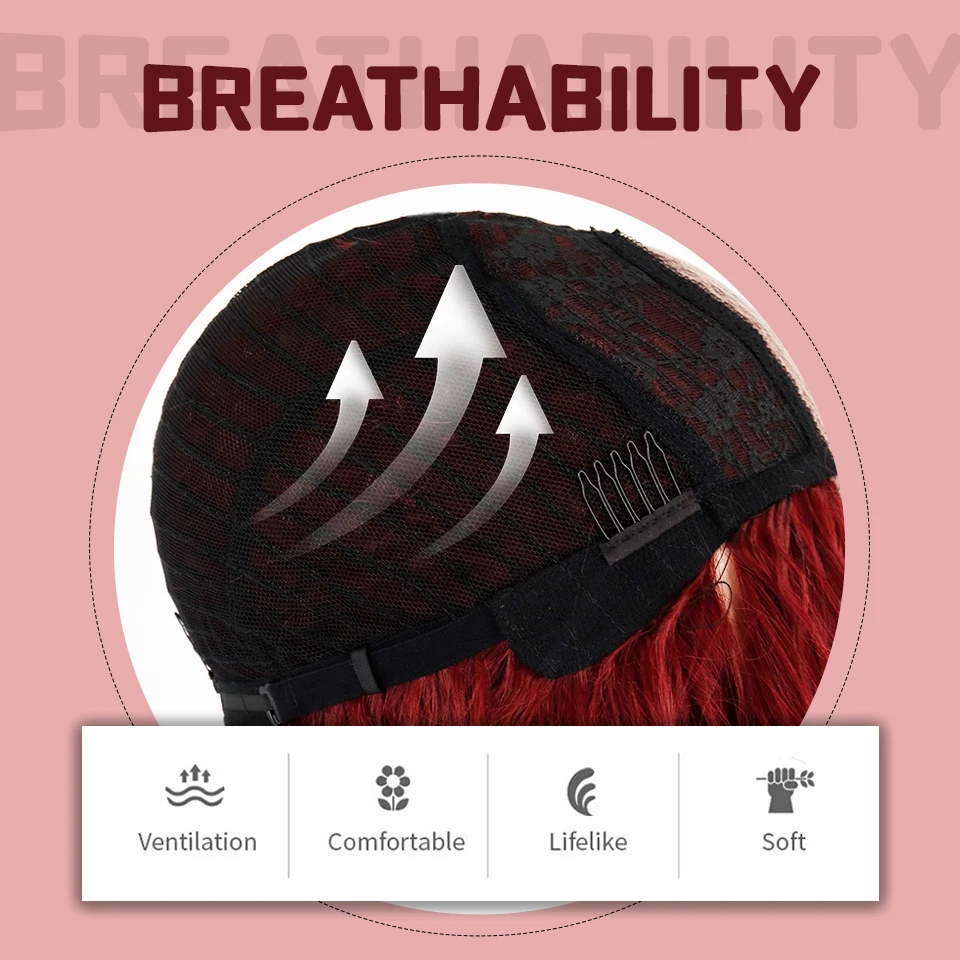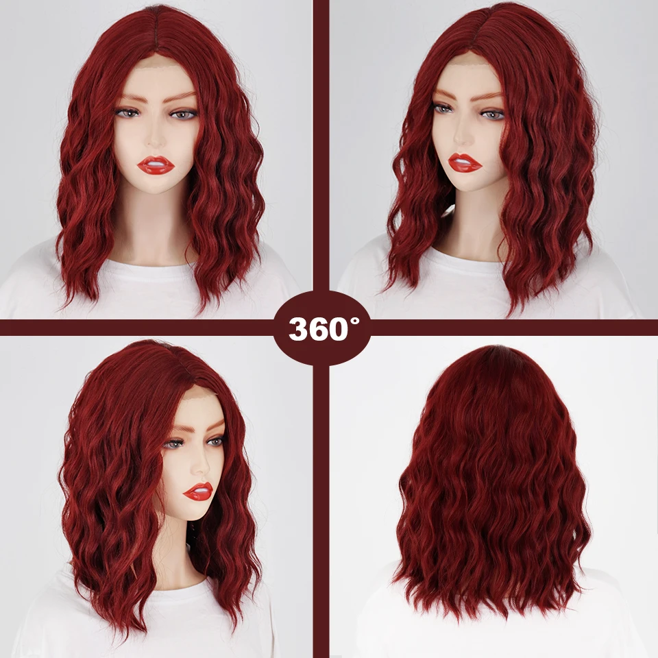 Синтетические Короткие вьющиеся парики боб, короткие бордовые волосы, длинные волосы для женщин, средней части, термостойкий парик