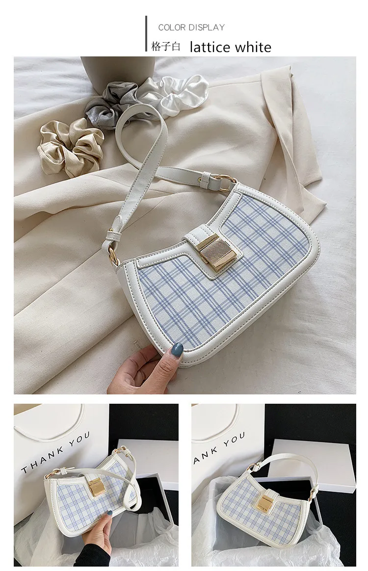 Модная женская сумка на одно плечо из искусственной кожи, новинка 2021, Корейская Франция, Popluar, повседневные клетчатые сумки через плечо, женская сумка