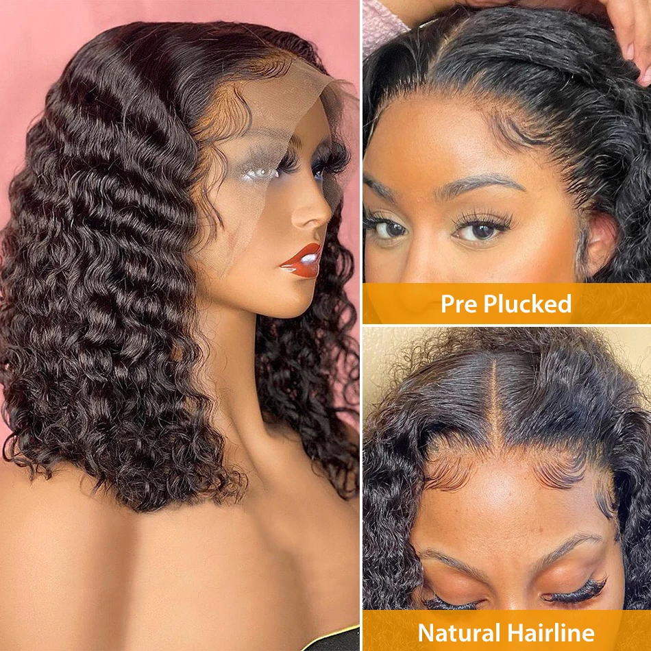 Парики из человеческих волос с глубокой волной, на сетке спереди, 1...