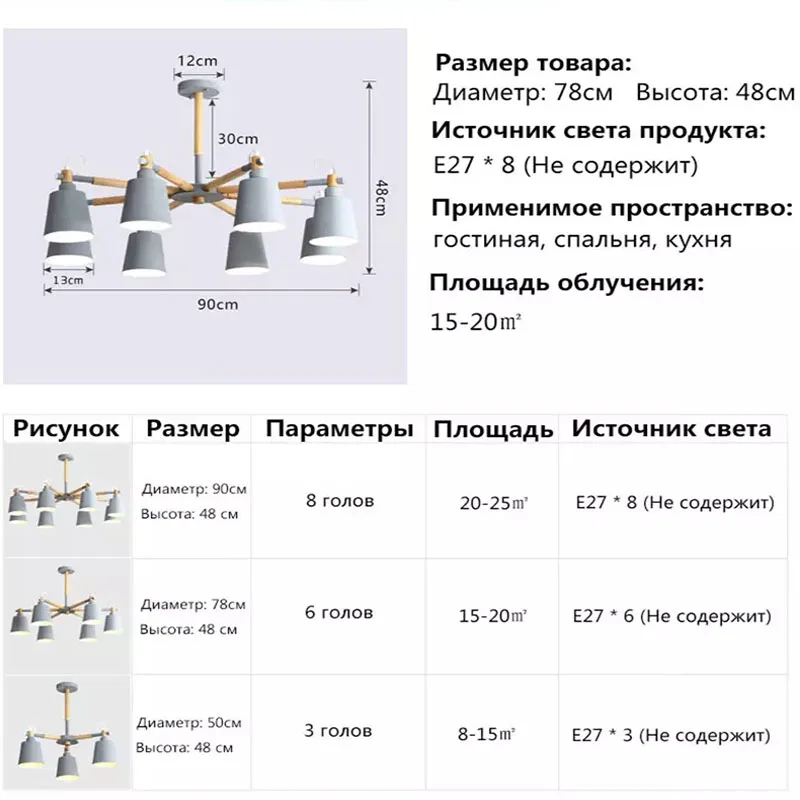 ● Источник питания: E27 Max 3/6/8*40 Вт