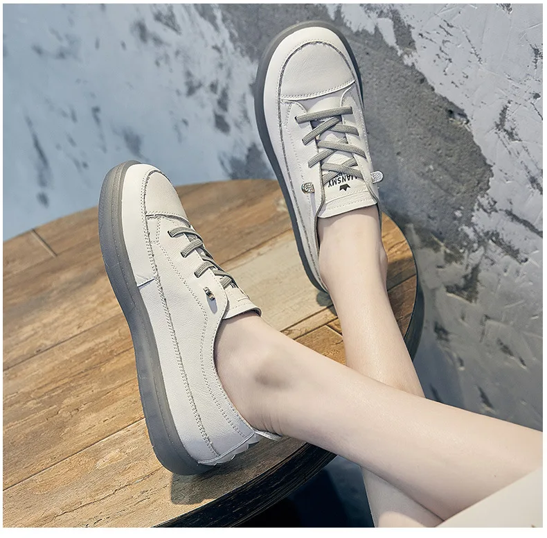 Кроссовки женские из коровьей кожи, на мягкой подошве, сшитые, на плоской платформе