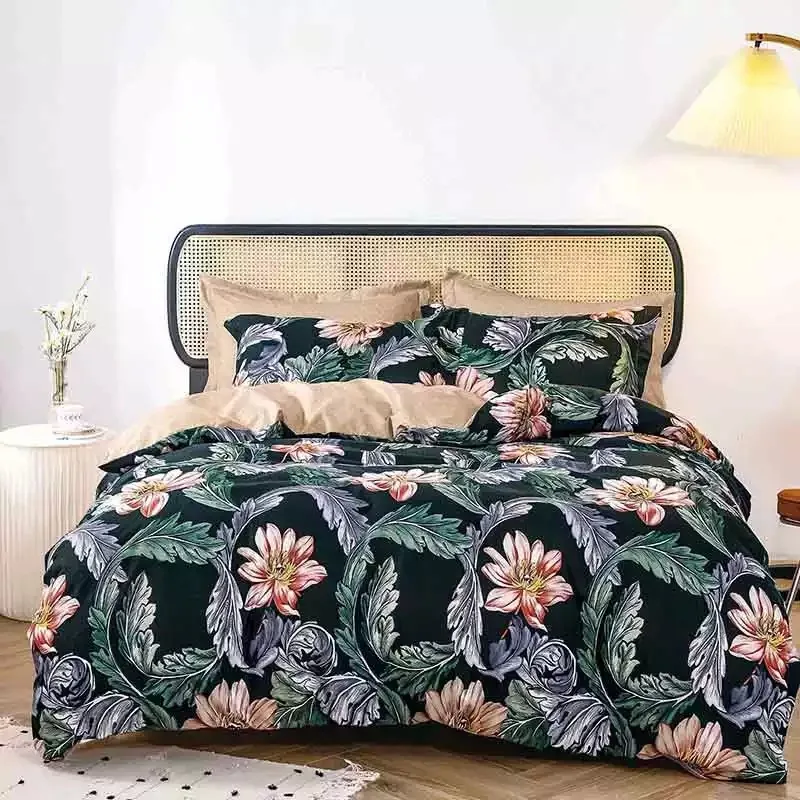 Постельное пришло быстро. На почту. Качество среднее, наволочки на клапан, а не на молнии как написано. Простыня светло коричневого цвета. Пока цвет яркий, но есть подозрения, что после стирки полиняет.