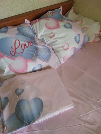 Взяла два одинаковых комплекта на 1,5. Мне так удобнее на диване. Качество нормальное для этого материала. Один комплект с промокодом и скидкой обошёлся около 460р. Пока не стирала. На пододеяльниках есть замочки, наволочки без замочков. Беруши в комплекте