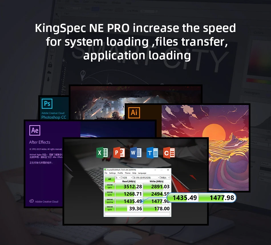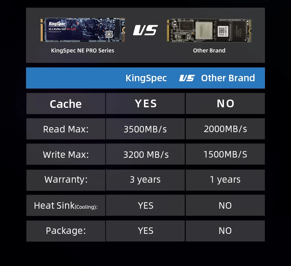 Жесткий диск KingSpec NVMe M.2, ssd 512 ГБ, 1 ТБ, 2 ТБ, с Dram pcie NVMe M key, внутренний жесткий диск 2280 для ПК, ноутбука, настольного компьютера, с Кэш-памятью