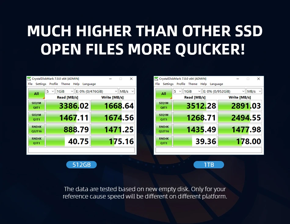Сравните с M.2 SATA SSD и M.2 PCIe SSD без кэша
