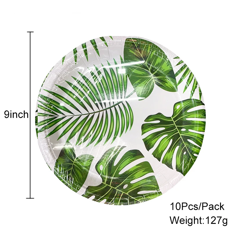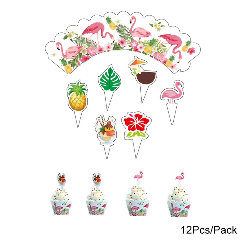 Гавайская одноразовая посуда для вечерние, украшение в виде листа, фламинго, бумажный стаканчик для кексов, одноразовая тарелка, салфетка, свисток, украшение в джунглях