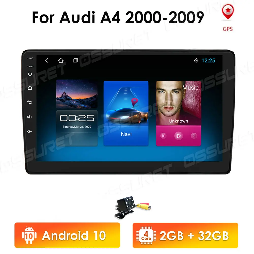 Автомагнитола на Android 10 DSP, мультимедийный видеоплеер, стерео GPS для Audi A4 2000-2009, 4G, Wi-Fi, четырехъядерный, сенсорный экран, карта CarPlay, SWC