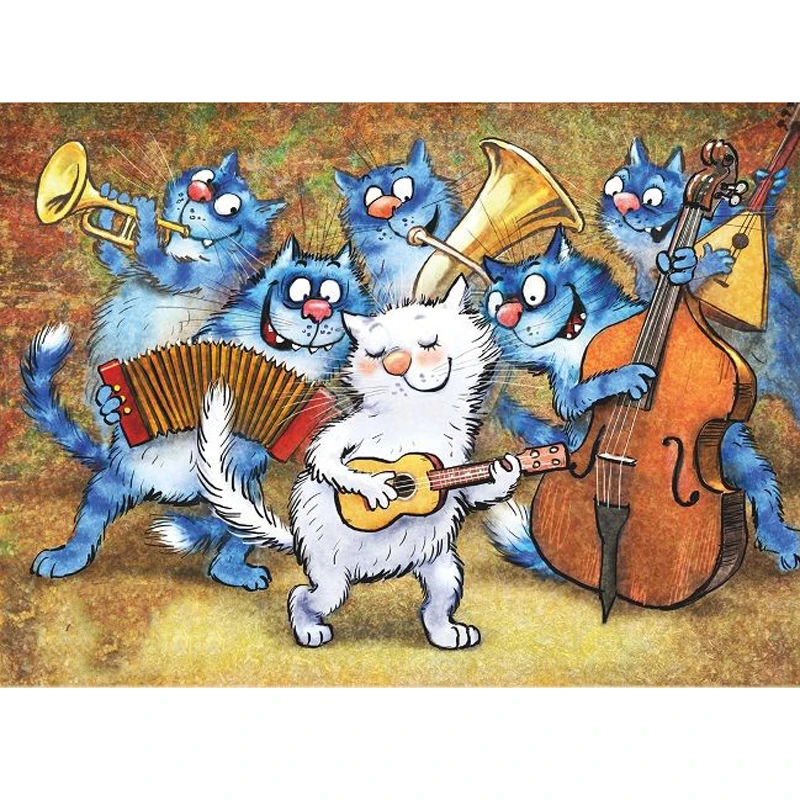 Алмазная 5D живопись сделай сам, пейзаж с синим котом, полная выкладка, мозаика с рисунком животных, вышивка крестиком, домашний декор, картина