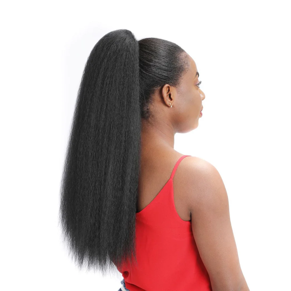 Прямые волосы Jeedou Yaki, хвост для конского хвоста, накладной Синтетический хвост, длина 55 см, шиньон для чернокожих женщин