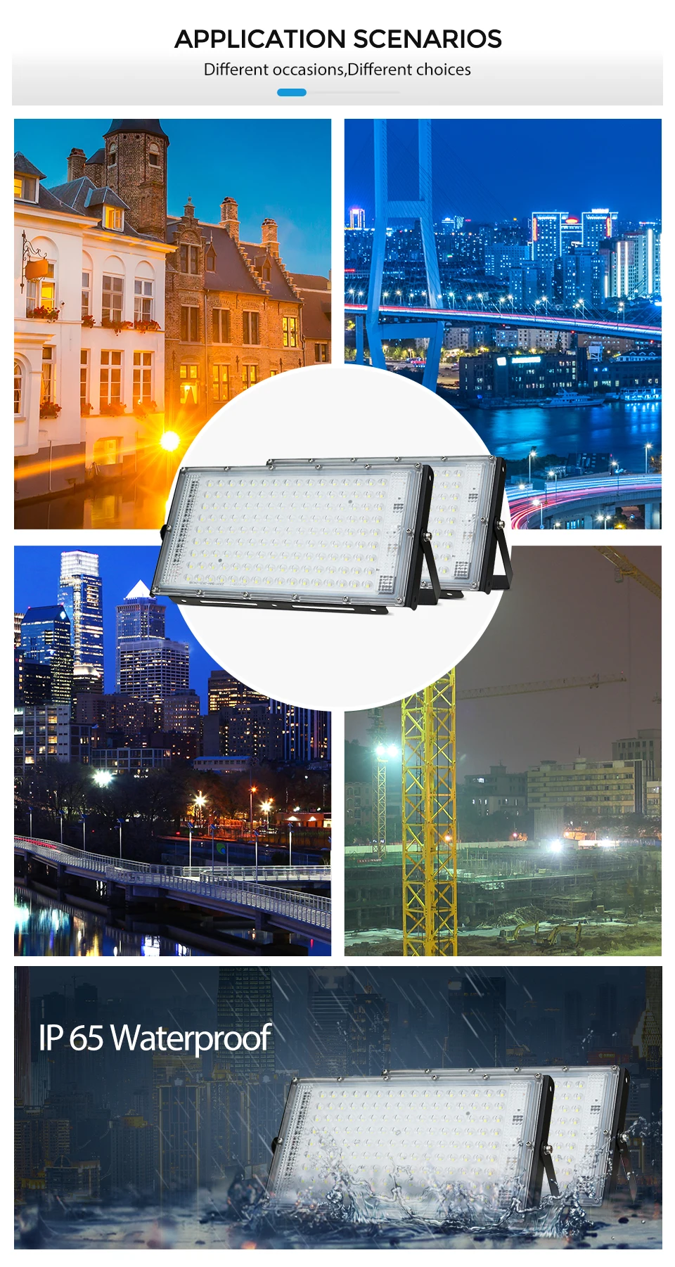 Применение: сад, площадь площади, афиша, завод, тренажерные залы, доки и другие места, где прожекторы имеют широкий угол обзора 120 градусов.